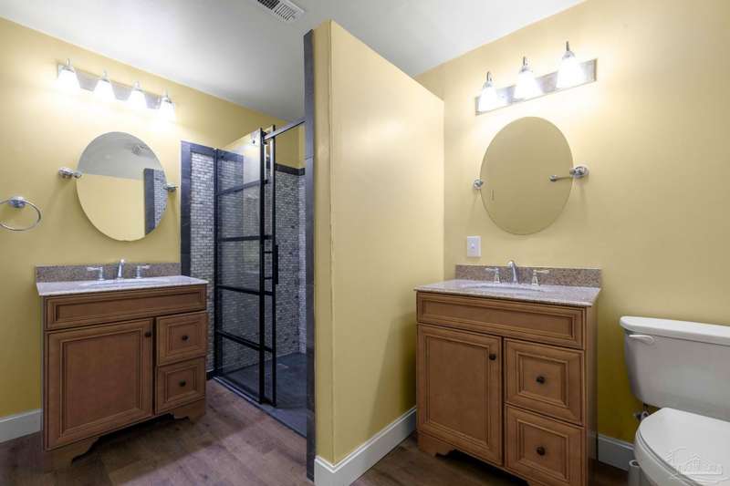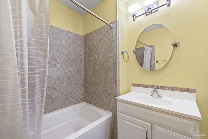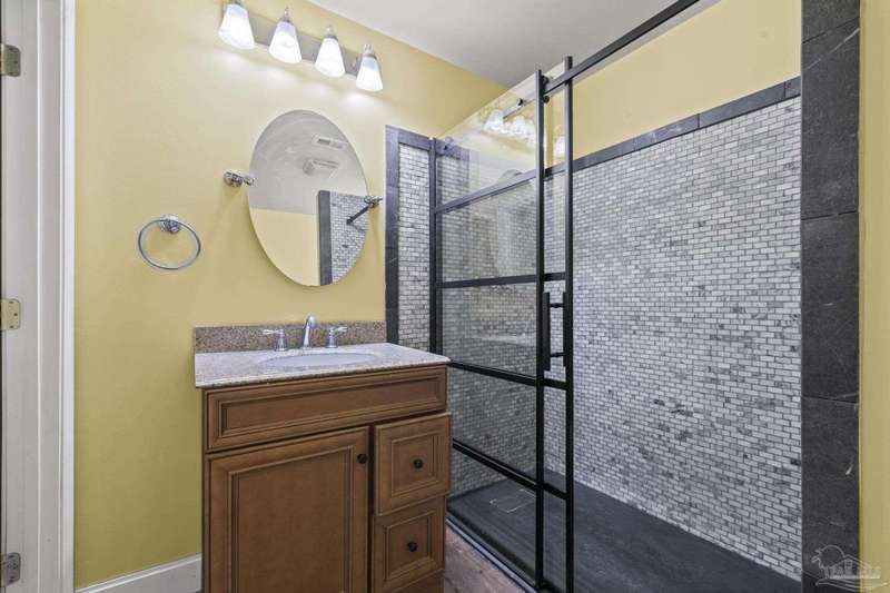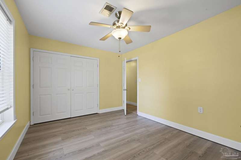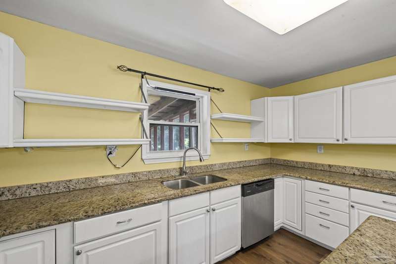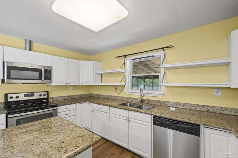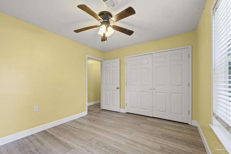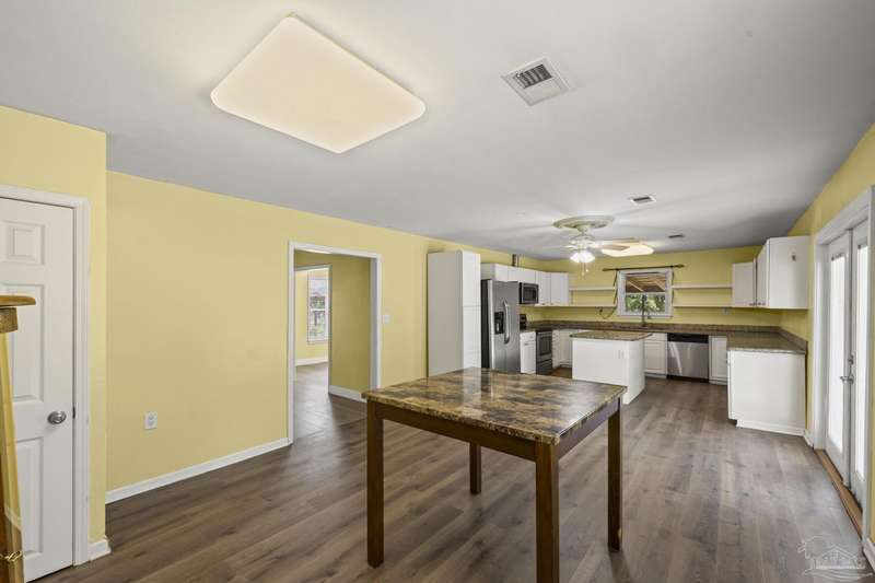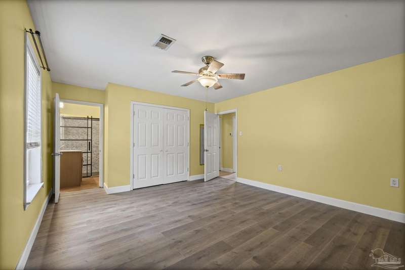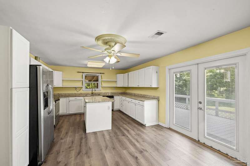 **SELLER CONCESSIONS AVAILABLE AND OPEN TO OWNER FINANCING** Are you searching for the perfect Gulf Breeze home? Search no longer! This 4-sided brick ranch sits on a double lot with woods in the back for a secluded feel while enjoying close proximity to Pensacola Beach and restaurant and shopping venues. A newly built covered front porch was added to allow for a lovely greeting area for your guests. In addition, a screened in covered porch with a ceiling fan is a perfect area to sip your morning coffee and enjoy the serene surroundings and sounds of birds and fish in the pond. The circular driveway is perfect for guest parking as well as the addition of the pole barn in the front. This, plus the attached 2 car garage makes this home an entertainer's dream! In the backyard you will see a ginormous fenced in yard and a newly installed out building. Inside, observe the fresh paint throughout the home and the absolutely massive eat in kitchen! Beautiful French style doors lead from the kitchen to the oversized back porch. High vaulted ceilings featured throughout the home to give an extra luxurious feel. The primary suite features 2 large closets and a beautifully redone full bath with beautiful new tile and stand-up shower. The 2 bedrooms are perfect for guests and include large closets. The spare bath features a shower tub combo and a single vanity. Schedule your showing today!