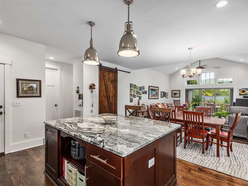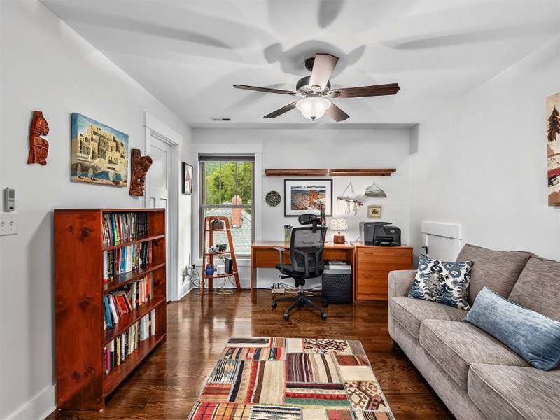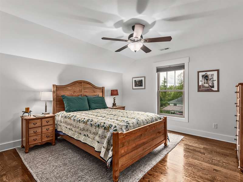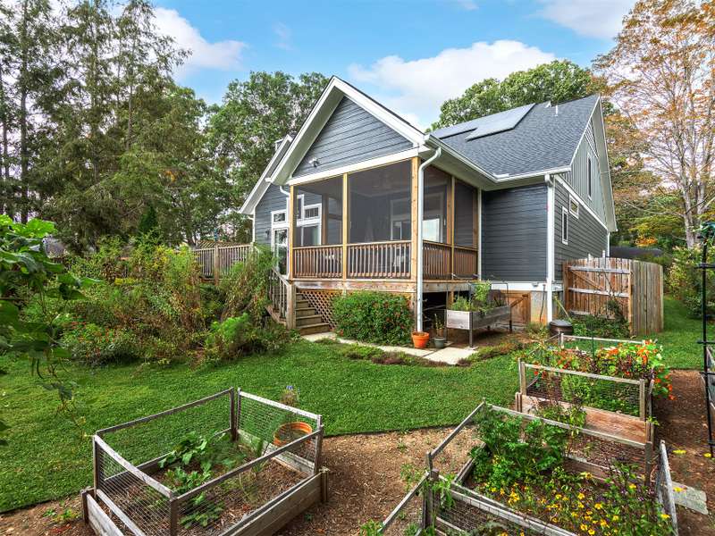 Walking Distance to Downtown Black Mountain! Just 1 mile from the heart of downtown and 1.5 miles to the trails system at Montreat, this immaculate 3-bedroom, 3.5 bathroom home blends charm and modern convenience. The inviting open floor plan features gleaming hardwood floors, a cathedral-ceiling great room with a striking stone fireplace, and a spacious kitchen with granite island perfect for entertaining. The primary suite on the main level offers a spa-like retreat with a tiled shower, free-standing soaking tub, and direct access to a beautiful, screened porch overlooking mountain views. Upstairs, a versatile bonus room makes an ideal exercise space, playroom, or home office, plus two guest bedrooms with en-suite bathrooms. Outside, the property is a true gardener's paradise with raised beds stone pathways, storage shed, native plant gardens perfect for attracting monarch butterflies, other pollinators and an abundance of wildlife. Bathed in natural light and meticulously maintained, this home is move-in ready and perfectly located to enjoy all that Black Mountain has to offer.