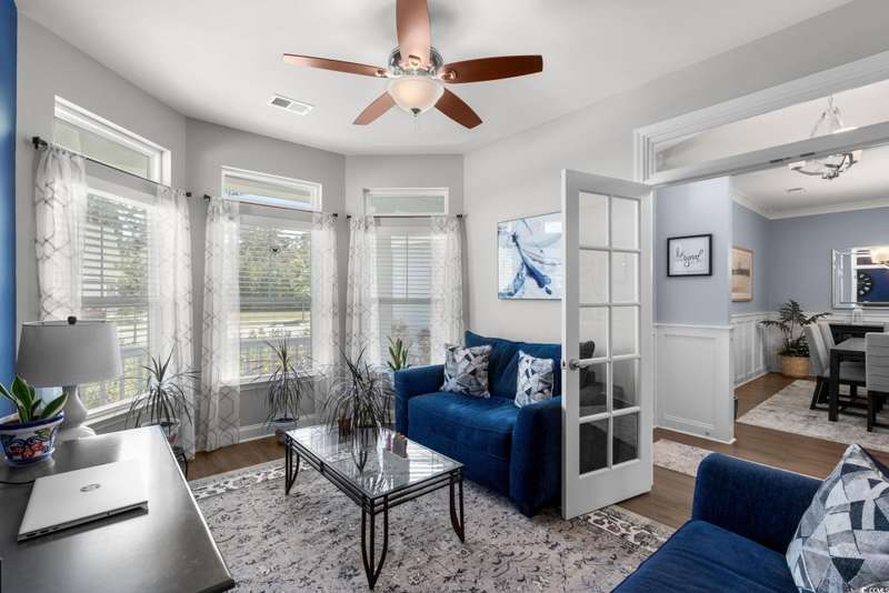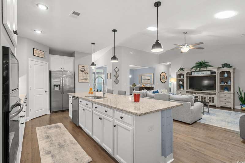 ***OPEN HOUSE Saturday October 4th 12-3pm*** Welcome to 838 Mourning Dove Drive in the desirable Belle Harbor community—just 5 years young and truly better than new! From the moment you enter, you’ll notice the thoughtful details throughout. Off the foyer, upgraded wainscoting (Board & Batten) leads to two spacious guest bedrooms and a full bath. The home then opens into a stunning family room, dining areas and a chef’s kitchen designed with entertaining in mind. The kitchen is the showpiece, offering an oversized 11-foot island, gorgeous granite countertops, stainless steel appliances, white cabinetry, a gas range with stylish hood, and a white subway tile backsplash. Enjoy both a formal dining room and a roomy kitchen eating area—plenty of space for gatherings, large or small. The open layout flows seamlessly into the family room, highlighted by upgraded lighting, ceiling fans, and a cozy gas fireplace. A versatile flex room adds even more options—perfect for a home office, gym, craft room, or extra bedroom. The beautiful primary suite is a true retreat, featuring two walk-in closets and a luxurious ensuite bath designed for comfort and style. Step outside to your private backyard oasis. The upgraded lanai features vinyl panels that easily lower to screens for year-round enjoyment. A spacious patio and generous yard provide the perfect setting for relaxation, entertaining, or even a future pool. Additional features include a third garage door, ideal for a golf cart—a must-have for Market Common living. This one-story ranch-style Lexington model is also a Smart Home, equipped with Alexa, a Ring doorbell, and a smart thermostat. Belle Harbor offers resort-style living with sidewalks throughout, a community pool, pickleball and tennis courts, a playground, and more. Best of all, you’re just a golf cart ride away from The Market Common’s shops, dining, movie theater, and bowling alley—or head straight to Myrtle Beach State Park and the sandy Atlantic beaches. Don’t miss your chance to own this exceptional home in one of Myrtle Beach’s most sought-after communities—schedule your private showing today!