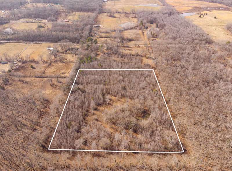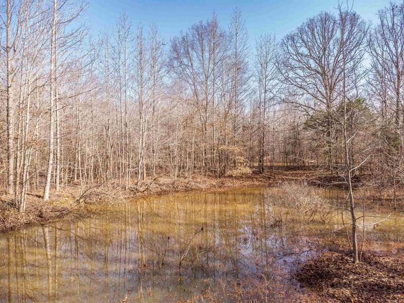 6.56 +/- acres with a clearing for a house near the pond. Far enough away from any traffic, but close enough to dining & shopping.