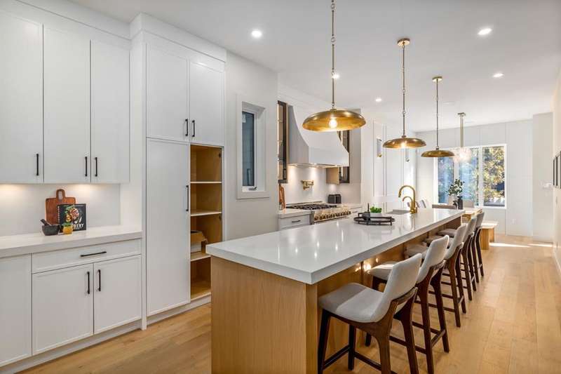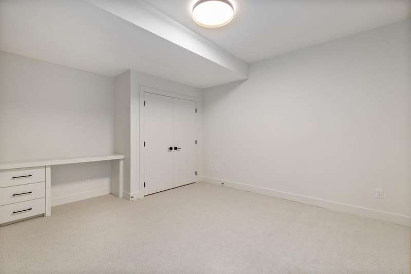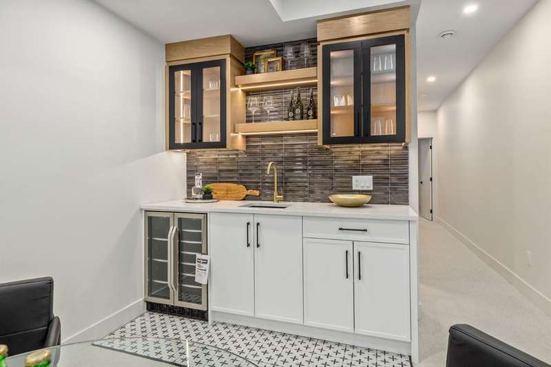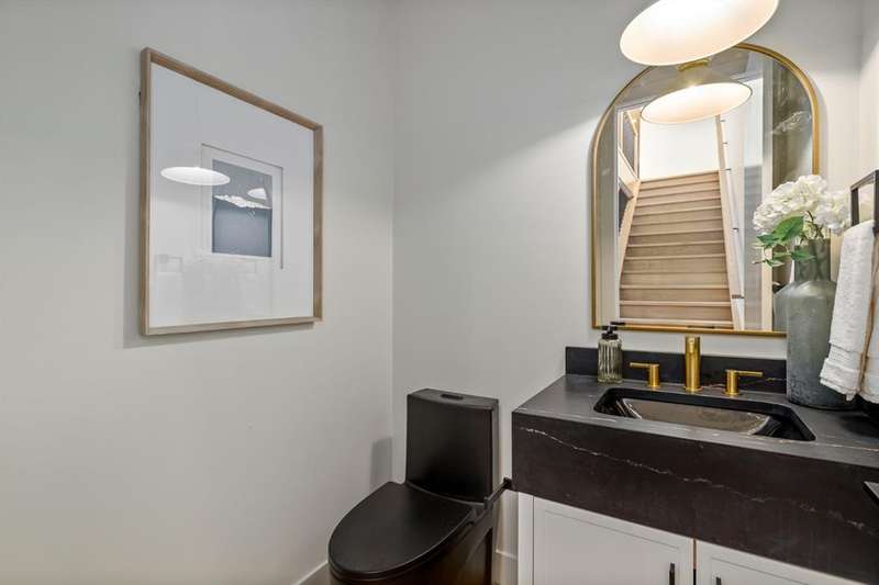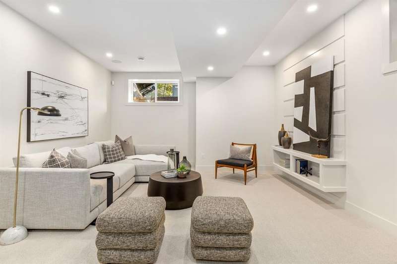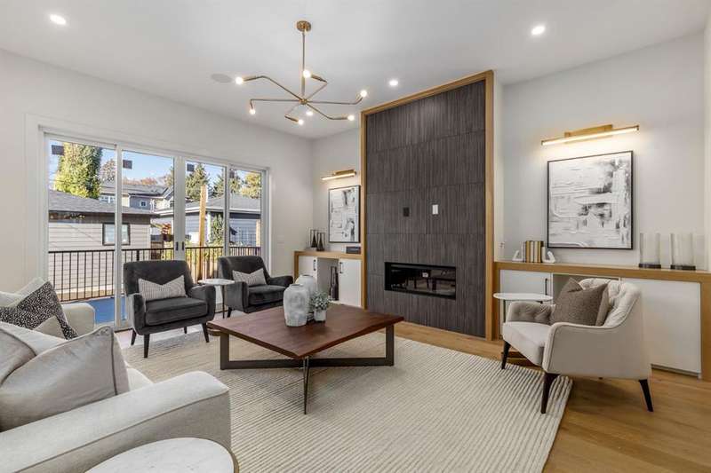 OPEN HOUSE Sun Nov 30th 12-3PM! Experience elevated inner-city living with this impeccably designed, brand-new home nestled in one of Calgary’s most sought-after neighbourhoods: Hillhurst. Constructed by a trusted local builder known for craftsmanship, functionality, and aesthetic excellence, this 2-storey residence offers 2,224 SF above grade, with a fully developed basement, 4 bedrooms, and 4.5 bathrooms—a perfect blend of modern luxury and thoughtful detail. From the striking brick facade to the high-end engineered wide plank oak hardwood, every inch of this home exudes quality. The main floor welcomes you with a built-in entry feature and a front formal dining area, accented by elegant wall mouldings, white and gold sconces, and a designer chandelier. At the other end, an open-concept living room is a showstopper, featuring a large-format textured tile fireplace, custom built-ins with display lighting, and massive patio sliders leading to a west-facing, 135-ft deep backyard with a raised patio and gas line—ideal for indoor-outdoor entertaining. The chef’s kitchen is nothing short of stunning, complete with a 2.5" thick quartz island, panel-ready fridge/freezer with knurled handles, sleek quartz countertops, a gas range with pot filler, and backlit display cabinets framing the custom hood fan. You’ll also find a farmhouse sink, full slab backsplash, hidden coffee/appliance nook, built-in pantry, and a drawer-style microwave—each designed to inspire culinary creativity. Tucked behind a barn-style sliding door, the den offers a quiet workspace with a built-in desk, shelving, and bright window. The mudroom, also with a barn door, features tiled flooring, a built-in bench, and a large closet for seamless organization. Upstairs, each of the three spacious bedrooms come with walk-in closets and custom built-ins, along with private ensuites. The primary is sure to impress with vaulted ceilings, a LED-lit feature wall, statement gold light fixture, and a spa-inspired ensuite that boasts a steam shower, dual vanities, and a standalone soaker tub with dramatic black and white tile wall backdrop. A nearby laundry room offers convenience with a sink, folding station, shelving, and tile backsplash. The fully finished, carpeted basement, with 9-ft ceilings, is roughed in for in-floor heating and designed for comfort and versatility—featuring a spacious rec area, a TV wall with built-in components, a wet bar with lit display shelves and tile flooring, a full bath, and a large fourth bedroom with built-ins including a desk. An efficient mechanical room completes the lower level, with additional upgrades including solid core doors and built-in speakers throughout the entire home. Perfectly situated just steps from shops along 14 St NW and walking distance to Kensington Village, Calgary’s extensive river pathways, and the Downtown Core—this is urban luxury at its finest. Act now and make this exceptional Hillhurst property your forever home.