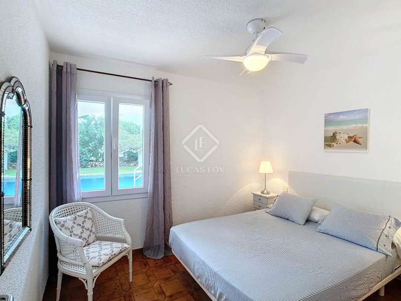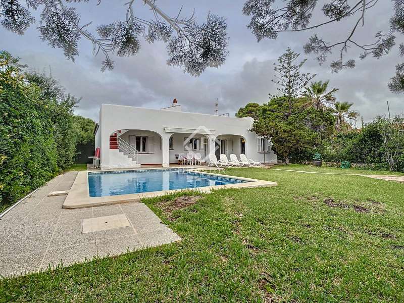 Lucas Fox presents this 160 m² ground floor villa with a 24 m² extension on a 614 m² plot and with a tourist license. It is located in the Cala'n Bosch development , in the municipality of Ciutadella de Menorca, a few meters from the marina and the beach. The property welcomes us with an entrance that gives access to the day area where we find a modern open kitchen that is very functional and fully equipped. It opens onto a comfortable living-dining room with a fireplace, ideal for winter nights, which has access to the covered porch where we have an exterior bathroom . On the other side of the entrance, a corridor leads hall to the night area where we have three double bedrooms, two of them with built-in wardrobes that share a bathroom with microcement finishes. At the front of the house we find a garage/ storage room ideal for motorcycles and bicycles. The property was recently renovated and has ceiling fans in all rooms to ensure greater comfort throughout the year, PVC tilt-and-turn exterior carpentry with double glazing, PVC Menorcan exterior blinds, alarm, Wi-Fi and automatic irrigation. Exterior, we have a large garden area with a barbecue, perfect for relaxing outdoors, a 34 m² swimming pool and stairs that lead to the terrace with distant views of the sea and where a 24 m² space could be built. Without a doubt, an ideal property to live in all year round or spend time with family and/or friends, as well as being able to rent it out as a tourist property as it has a tourist license. Please contact us for more information or to arrange a visit.