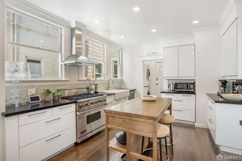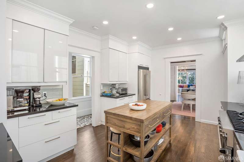 This refined Presidio Heights condominium marries beautiful architectural details with modern updates in a highly desired location. The two level floor plan has gracious spaces for entertaining with separation from the roomy bedrooms for privacy. Box beam ceilings, wainscoting and fireplaces exude elegance in the living areas. The expansive living & dining areas have a transitional space in between, to use in various ways. A spacious bright kitchen has a Viking range and plenty of storage space to delight any home chef. Four bedrooms face south with city views including Sutro Tower and Golden Gate Park. The fifth cozy bedroom can be a convenient home office, a yoga room or nursery. The entire condo, which is the upper unit in the building, has nice natural light. One car tandem parking, additional storage & in-unit washer/dryer complete this special property. Experience close proximity to chic boutiques and excellent restaurants on Sacramento St. and California St. and enjoy the expansive Presidio National Park and Presidio Wall playground.
