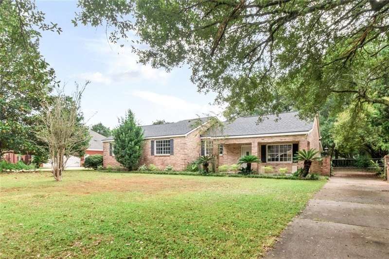 SELLER IS OFFERING A HOME WARRANTY AND UP TO 1% ON BUYERS CLOSING COSTS WITH AN ACCEPTED OFFER. Are you in search of a completely renovated all-brick, English cottage-style home that is nestled on a sprawling lot in the heart of West Mobile? Look no further! This charming property boasts modern upgrades while retaining its inviting character, situated on a tranquil, tree-lined cul-de-sac. This beautiful 4-bedroom, 3-bathroom home is set on over a half-acre lot. Many modern upgrades but still contains all the feel-good charm with its antique brick and style. Upgrades include a new roof (2023) | AC system 2024|tankless water heater 2024| all new baths 2024 | new flooring 2024|updated kitchen & freshly painted throughout. Once inside your greeted to a spacious great room featuring a dining area w/ split brick flooring, and a cozy gas fireplace w/ custom built-in cabinetry. The open-concept kitchen is designed for entertaining, showcasing rich cabinetry paired with elegant granite countertops. There are 4 bedrooms w/ 2 bedrooms having their own private en-suite baths, making them wonderful for guests or in-laws. Outdoors you'll find the fenced backyard is complete with a covered rear porch, several storage sheds, and a garage/workshop. The side driveway is accentuated by wrought iron gates and faux gas lanterns, adding a touch of old-world elegance. This meticulously maintained home is surrounded by beautifully landscaped grounds with established plantings and charming great curb appeal! Conveniently located near Hillcrest & Cottage Hill w/ close proximity to local schools, parks, entertainment and shopping.Buyer responsible for verifying all measurements and relevant details.
