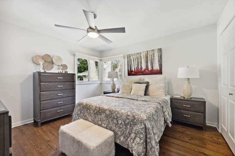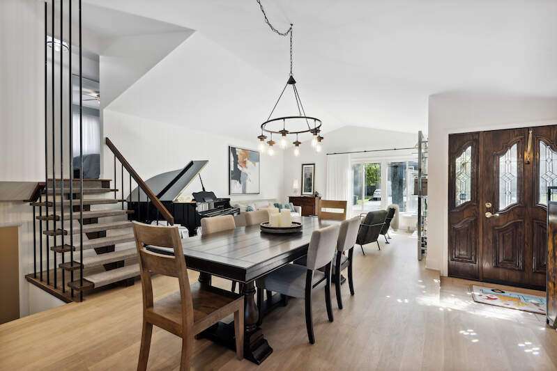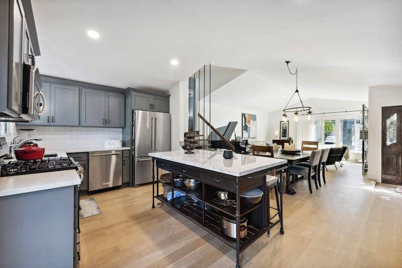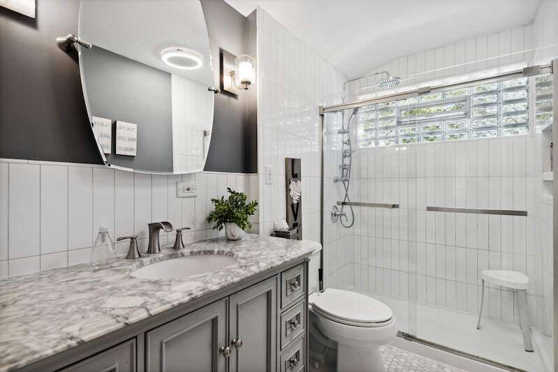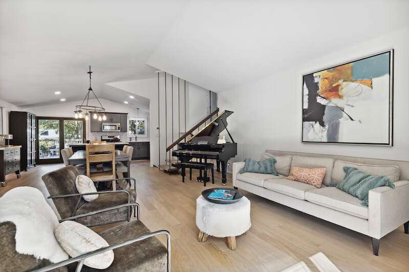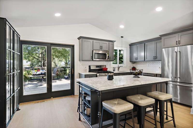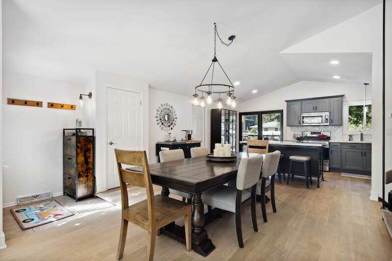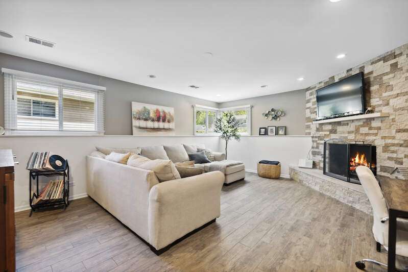 Gorgeous Mid Century Modern home Newly remodeled OPEN CONCEPT with Vaulted Ceilings! ONE and a half miles from DOWNTOWN NAPERVILLE in MAPLEBROOK 1 North of 75th ST! Newer White Oak Hardwood in Great room and Kitchen, Hardwood Bedrooms, Porcelain Flooring in LL Family Room with Fireplace...Porcelain Flooring In Utility Room with W/D. SO many replacesments...Roof in 2024, UL Full bath 2024, CAC in 2020, Lower level bath redone in 2020. Walking distance to Trader Joe's, Casey's, Starbucks, etc! EXCELLENT location in a Beautiful Neighborhood. Naperville Central High School, Lincoln JH and Elmwood Elementary. St Raphael too! The exterior picture shows a pine accent exterior but has been replaced with Hardy Board in 2024. Owner is a licensed realtor in IL and listing agent