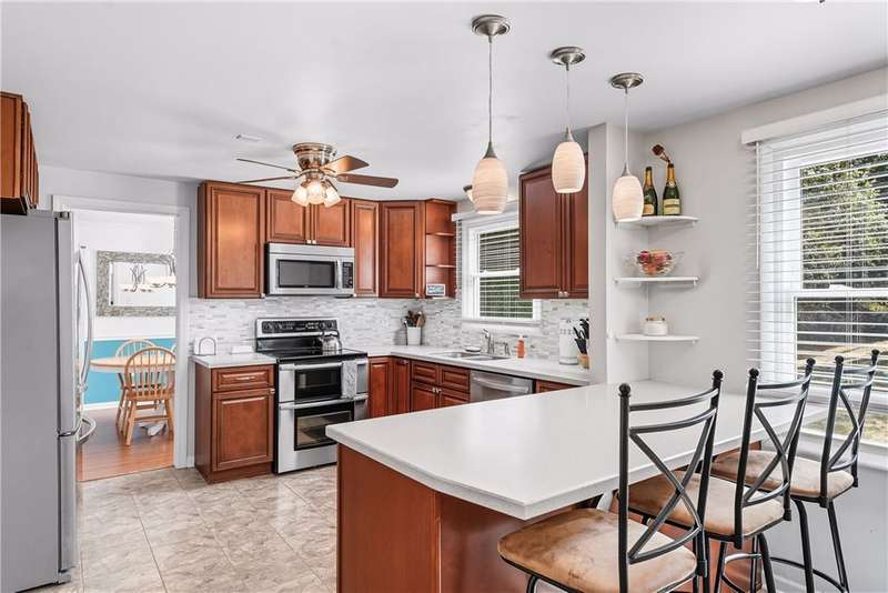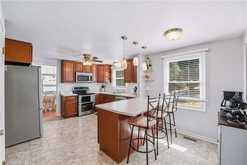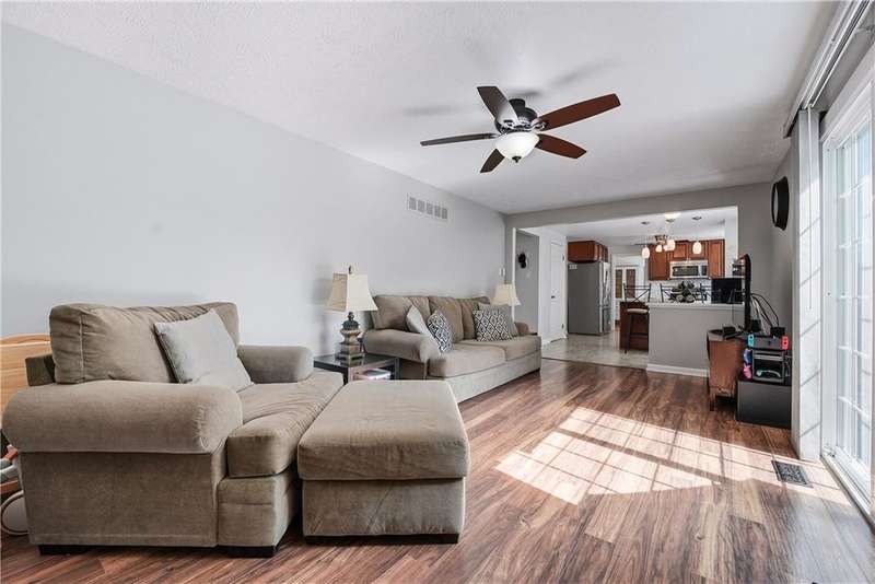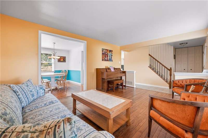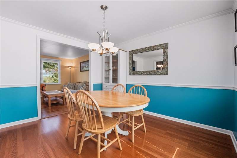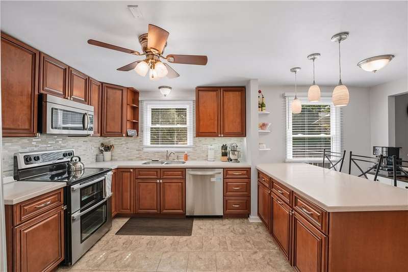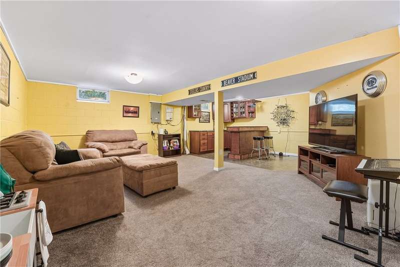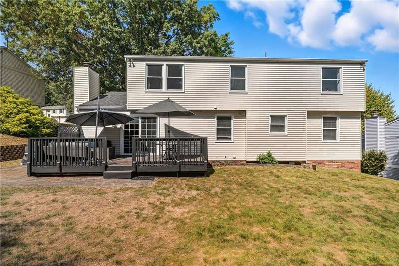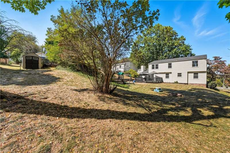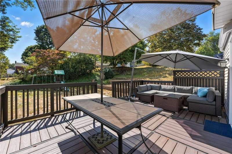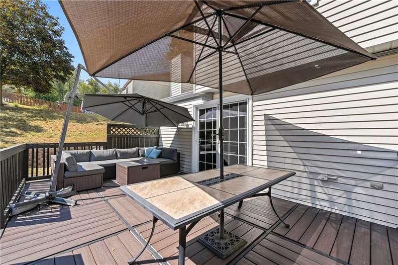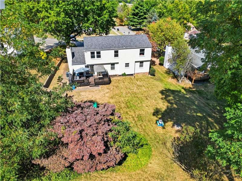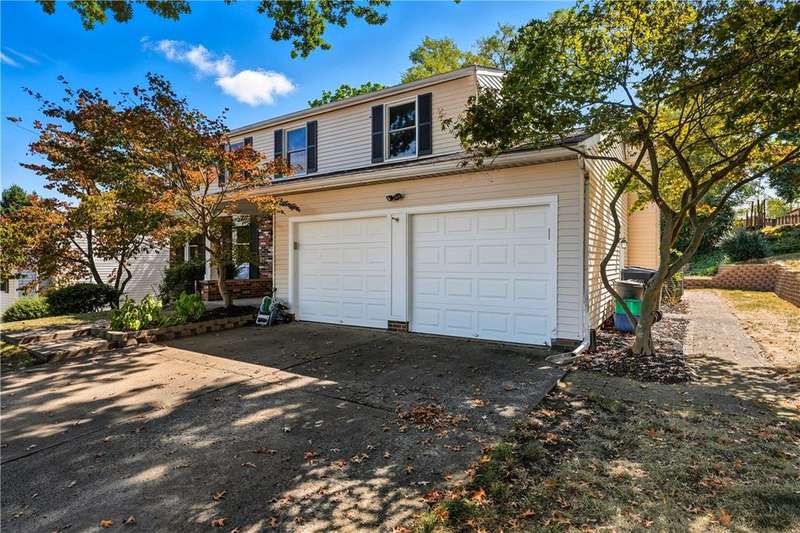 Completely updated 4 bedroom in the accessible Fernvue Estate Plan. Enter the spacious living room featuring gleaming Hardwood flooring for your family's and companies' enjoyment. Formal Dining area includes crown molding & chair railing. The fully equipped custom Kitchen exhibits upgraded stainless appliances, cherry stained maple cabinetry, solid surface tops, center island, ceramic tile backsplash, undercabinet lighting, coffee bar that opens into large Family room. A wood burning fireplace & decorative mantle will add to your buyer's enjoyment. The Owner's suite includes a custom bath & large walk-in closet. Three additional bedrooms & full bath complete the second floor. The partially finished basement/ bar area adds to the square footage and comfort. Additionally, a sizeable storage area completes the lower level. Outdoor activities on the new Trex deck, accommodated by the sizeable rear yard. Experience freshly painted exterior, custom inclusions, Cul-de-sac & Moon Area SD.