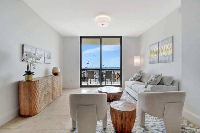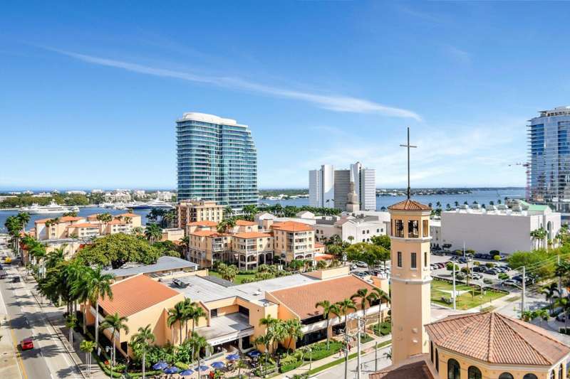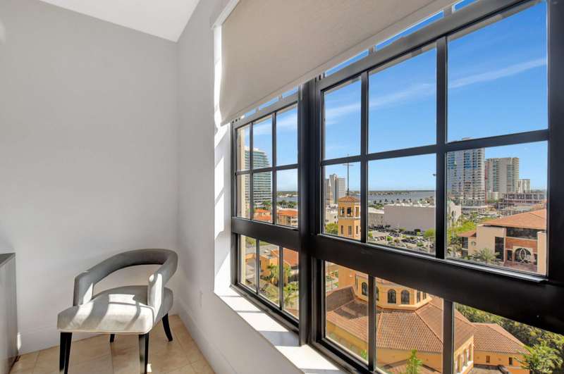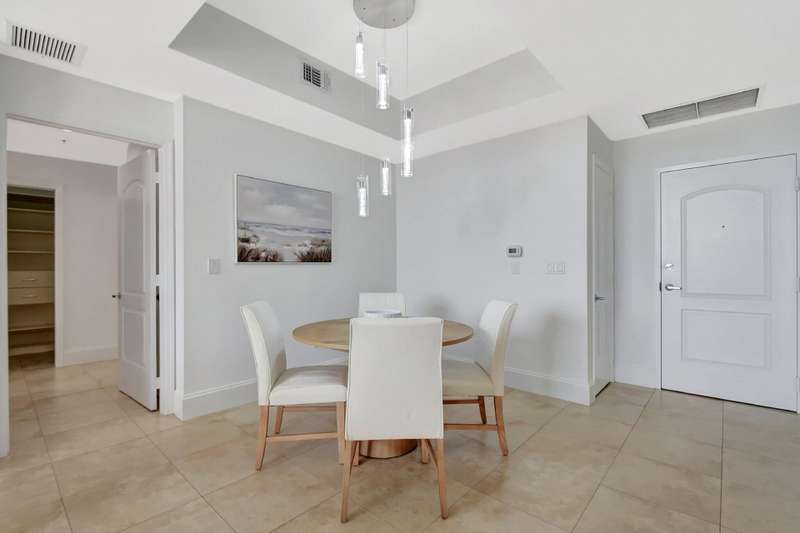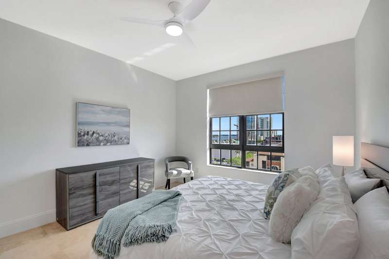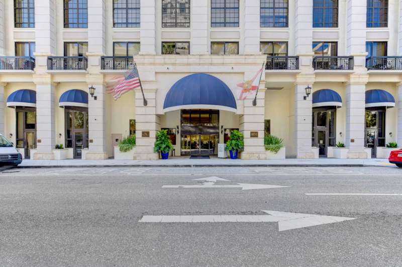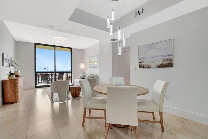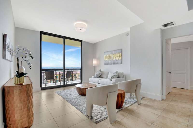 Southeast facing with panoramic water views! Upgraded interiors and new designer furniture. Features include stunning quartz kitchen with stainless steel appliances and dining island. Pantry/utility room with matching kitchen quartz counters/cabinetry with full size washer and dryer. Impact windows, California Closets, marble master bath, upgraded lighting and plumbing fixtures, electrical, mirrors and much more. Full-service building with roof top pool, sauna, steam room, BBQs, fitness center, clubroom, valet, and 24/7 concierge. Pet friendly, walk to City Place, Clematis and the Waterfront. 10 Minutes to PBI airport. This is downtown luxury at its finest. Building is meticulously maintained. All you need is your toothbrush!