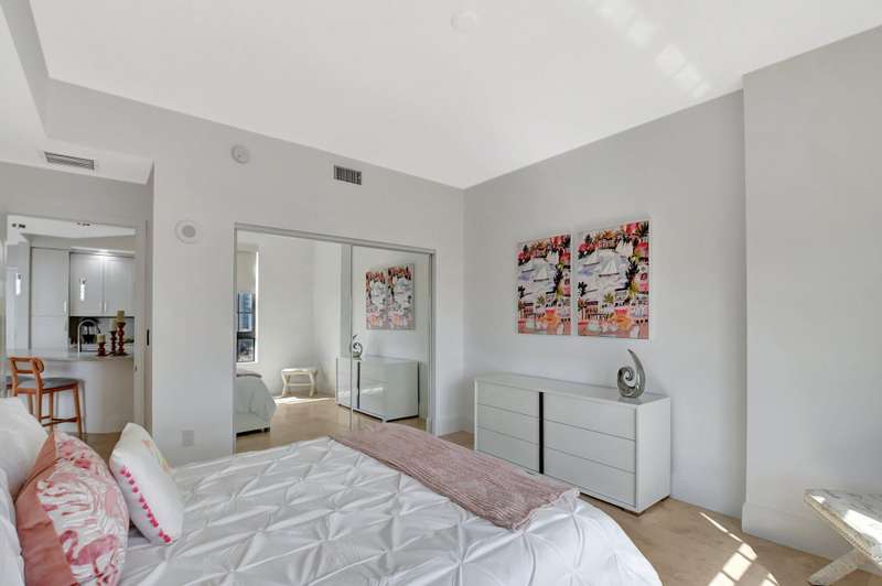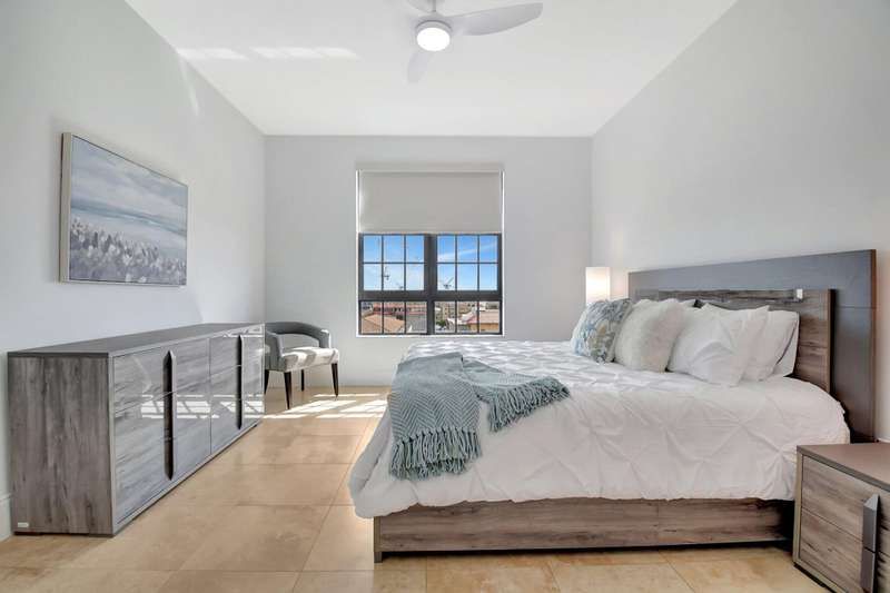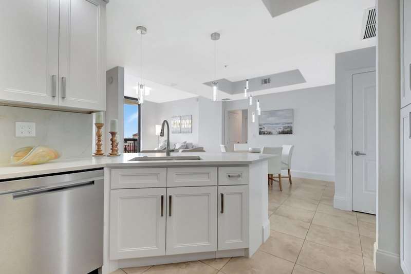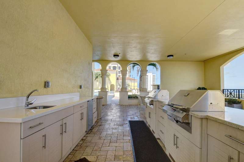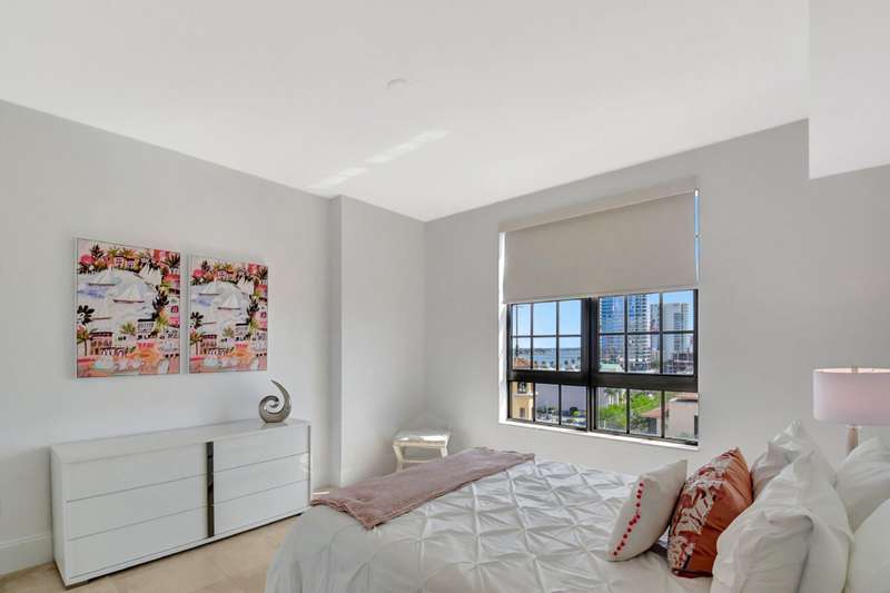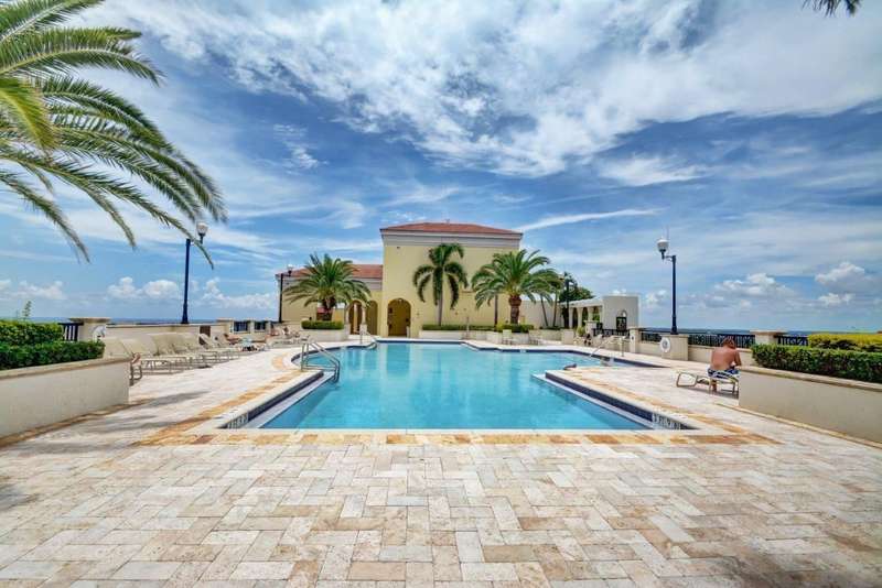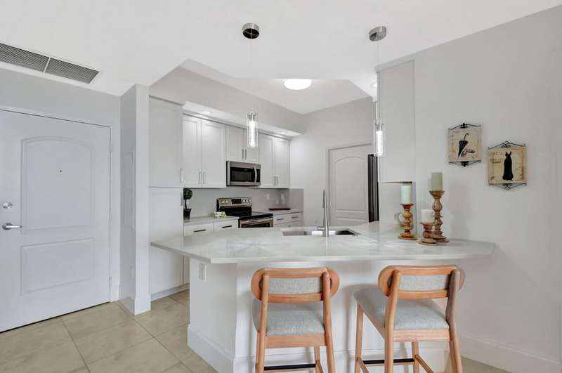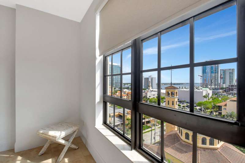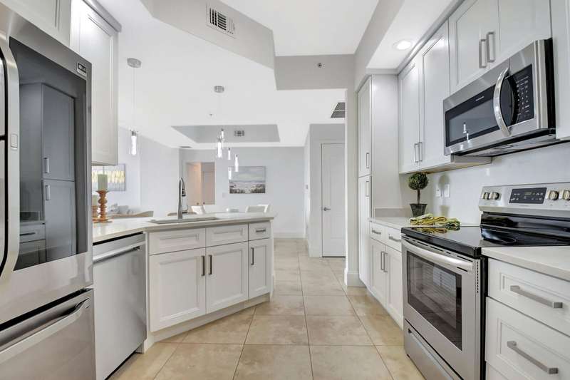 Southeast facing with panoramic water views! Upgraded interiors and new designer furniture. Features include stunning quartz kitchen with stainless steel appliances and dining island. Pantry/utility room with matching kitchen quartz counters/cabinetry with full size washer and dryer. Impact windows, California Closets, marble master bath, upgraded lighting and plumbing fixtures, electrical, mirrors and much more. Full-service building with roof top pool, sauna, steam room, BBQs, fitness center, clubroom, valet, and 24/7 concierge. Pet friendly, walk to City Place, Clematis and the Waterfront. 10 Minutes to PBI airport. This is downtown luxury at its finest. Building is meticulously maintained. All you need is your toothbrush!