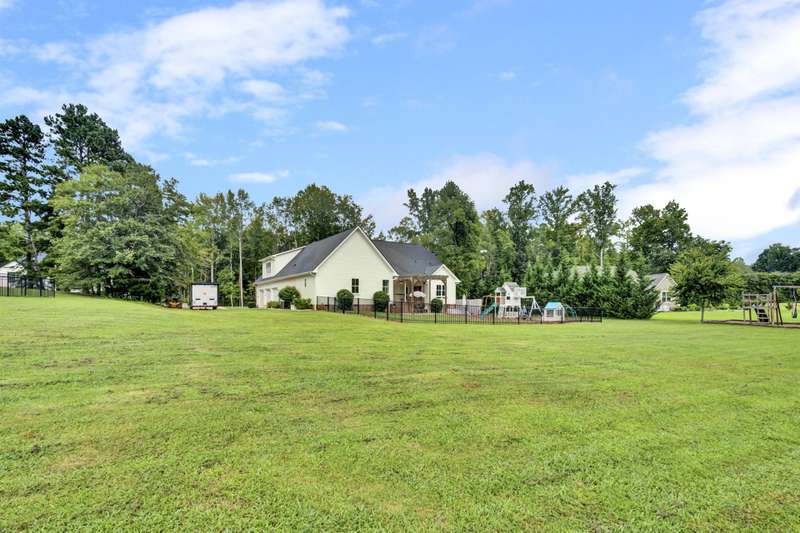 Nestled along the shores of Crawford Lake in Powdersville, this home has the charm of a modern farmhouse wrapped in the serenity of a lakefront retreat. The white concrete plank siding with board and batten accents gives it that timeless appeal, the kind that makes you feel like you've found the place you've always been meant to call home. Step inside and the two story foyer greets you with light and space. Just off the entry is a large dining room, perfectly placed for gatherings that grow even more special as the holidays approach. You can almost picture a long table filled with friends, family, and laughter. From here the heart of the home unfolds into the kitchen and family room, where life naturally gathers. The kitchen is as functional as it is beautiful. A long island stretches wide, ideal for spreading out holiday treats or evening homework while dinner simmers. The granite counters are stunning, each slab carefully chosen. A lovely hood crowns the stove, and the farmhouse sink feels right at home here. The thoughtful choice to avoid surrounding the sink with upper cabinets makes the space feel open and airy, as if the room breathes with you. The oversized pantry is a dream, ready to swallow up every crockpot, snack, and oversized platter you could possibly own. The family room is generous in size, anchored by a brick fireplace with gas logs that set the tone for cozy evenings. Wide windows draw your gaze to the lake just beyond, where the water shimmers in every season. Step outside and the living space continues. A covered deck makes for shady afternoons while a sprawling patio below becomes the hub for barbecues, stargazing, or simply a quiet evening by the water. The fenced yard gives kids their own place to run and play, yet just beyond the fence the lake stretches, a constant reminder of the rare beauty of this setting. Back inside, the home is designed mostly on one level. The primary suite is split from the guest rooms, creating a retreat of its own. Here too, large windows frame the lake view. The bath is well appointed with double sinks, a walk in shower, and a closet so spacious it feels like its own room. Just beside this suite sits a versatile space the seller uses as a gun room and office, a feature that adds both practicality and a touch of personality. The laundry room is oversized as well, ready for big appliances and storage that actually works. The guest bedrooms are tucked away on the other side of the home, connected by a jack and Jill bath that features its own farmhouse style sink. Each bedroom is bright and cheerful, designed with care and ample closet space. Upstairs you'll find another guest room and a nicely sized bonus room. Large windows flood these spaces with natural light, and plumbing is already in place for a future bath should you decide to expand. Outside, the level lot is beautifully landscaped, adding polish to the natural setting. Living on Crawford Lake in Powdersville is not something that comes available often, and this home captures the dream perfectly. The community dock opens the door to fishing, canoeing, or simply drifting across the water at your own pace. The location is just as special as the home itself. Wren schools are known for their strong sense of community and tradition, and this address puts you right in the heart of it. Yet you are also just minutes from Greenville, Anderson, or Easley, giving you the best of both convenience and retreat. This is more than a house on the lake. It is a story waiting to be lived, where farmhouse charm meets the stillness of water and the joy of community, all in one rare and beautiful setting.