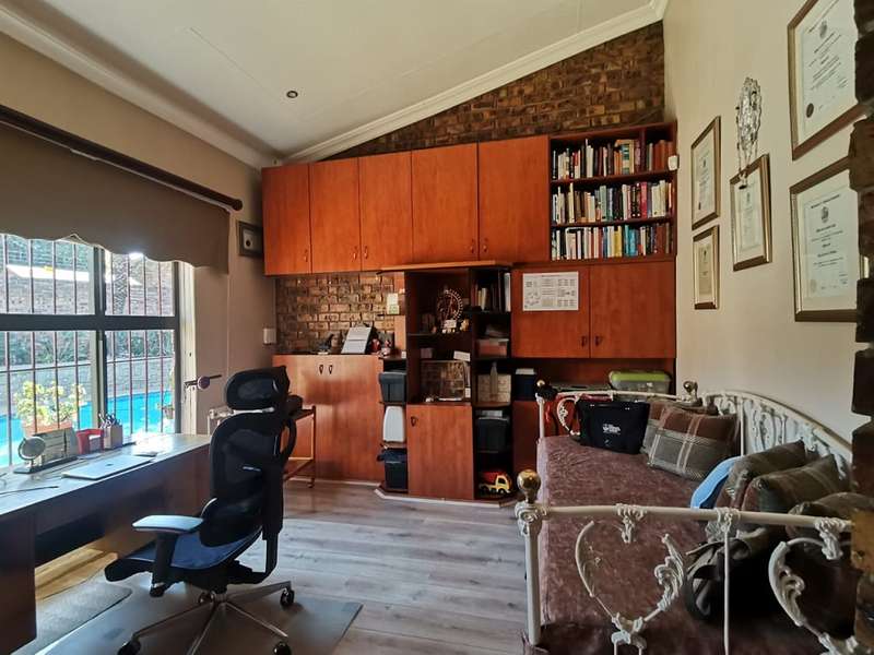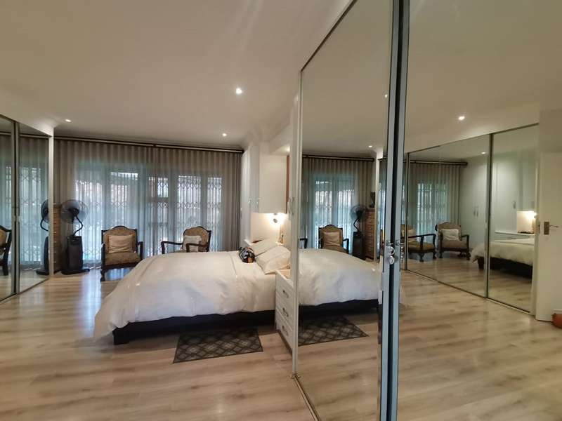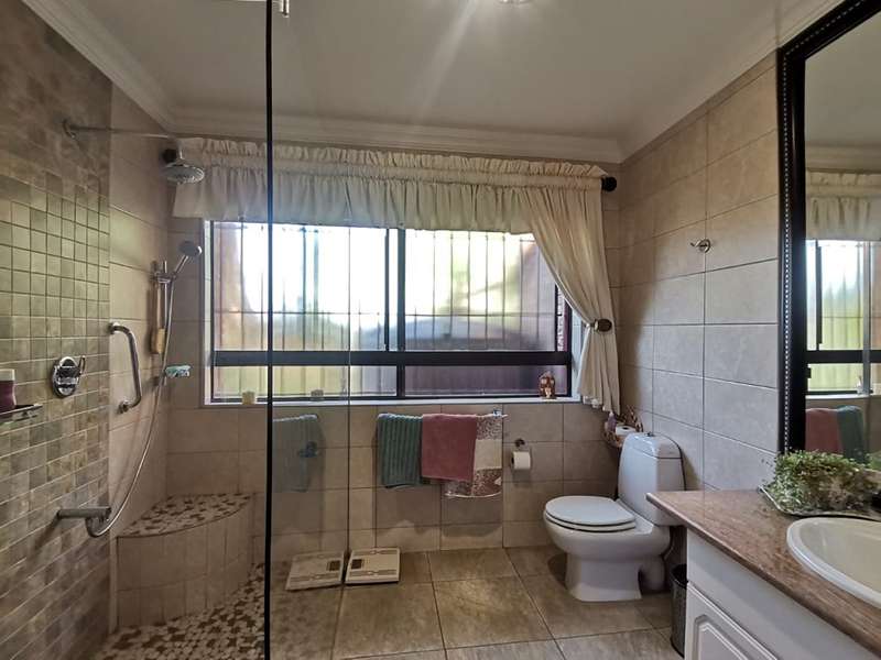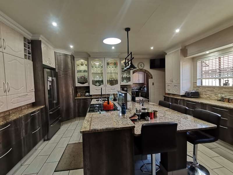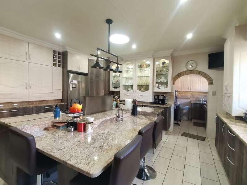 This extraordinary full-face brick home offers the perfect blend of comfort, style, and convenience - Upon entry, the grand entrance featuring a koi pond welcomes you and is filled with an abundance of natural light and space - Leading to the elegant formal lounge, dining room, and family lounge which seamlessly gives access to the well-built entertainment area overlooking the beautiful and charming garden with top-tier features including a sparking pool. The ultra-modern and spacious gourmet kitchen boasts a 6-plate gas stove, under-counter oven, central island, and a breakfast nook. There is also a spacious scullery and laundry with ample built-in cupboards. The home also offers a spacious multi-purpose room overlooking the garden. There are 3 spacious modern bedrooms with built-in cupboards and laminated floors The main bedroom has en-suite full bathroom, underfloor heating, private patio access, built-in wardrobes with mirrored doors and stunning scenic views. The second full beautiful bathroom services the other 2 bedrooms and the built-in sauna provides ultimate relaxation. This home is complete with a double door garage, a carport for 2 cars, and domestic quarters with a bathroom. An added bonus of 2 Jojo water tanks, solar panels and an inverter for energy efficiency. Don't delay, call now to view...Let me connect you to your new home.