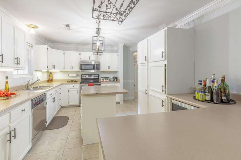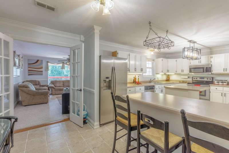 Delightful 3BR/3BA split foyer home offering spacious living and modern updates throughout. Features include large rooms, fresh paint, abundant crown molding, updated lighting fixtures, ceiling fans, and plenty of storage. Cozy living room with gas log fireplace flows into a fully equipped kitchen with island, wine cooler, garbage disposal, microwave, electric range, and dishwasher. Kitchen opens directly into a large family room with access to an oversized deck, perfect for entertaining and overlooking a private, fenced backyard. The expansive primary suite includes a huge walk-in closet and a spacious en-suite bath, with direct access to the deck for added privacy and relaxation. Full finished basement includes a large recreation room, full bath, bonus room (ideal for guest room, office, or home gym), and an oversized laundry room with exterior access to a second deck. Attached 2-car garage includes additional storage space. Laundry chute and utility building add even more convenience. A must-see home with room to grow?schedule your showing today!