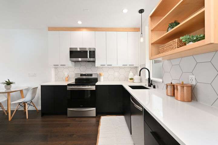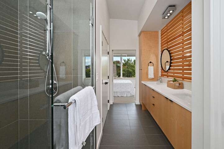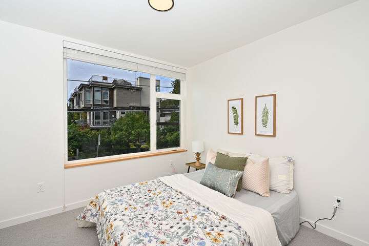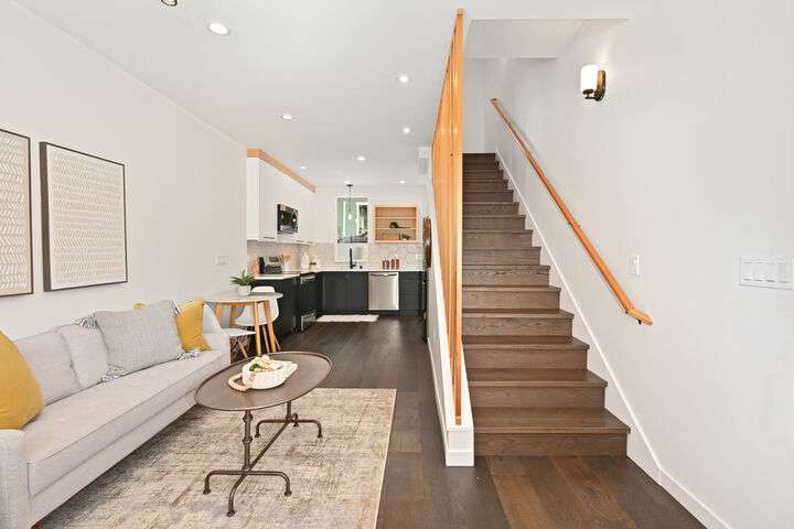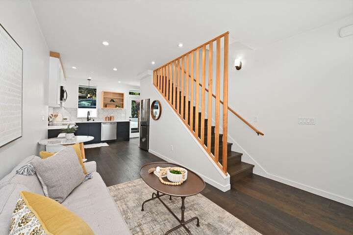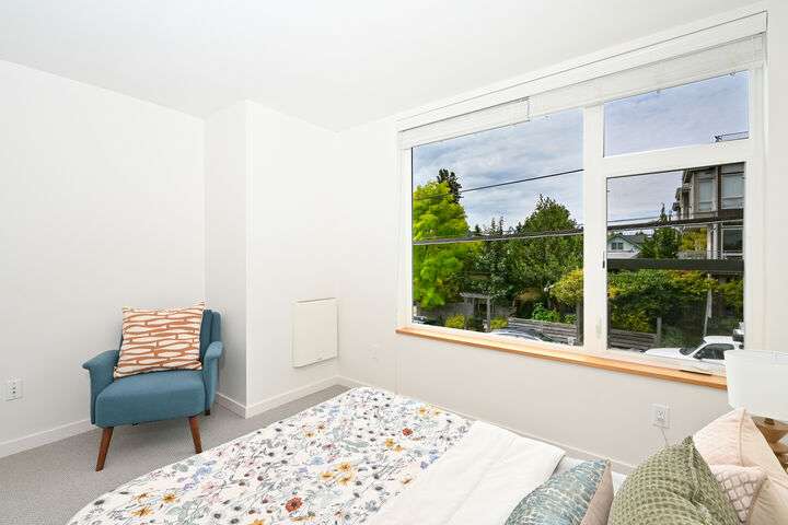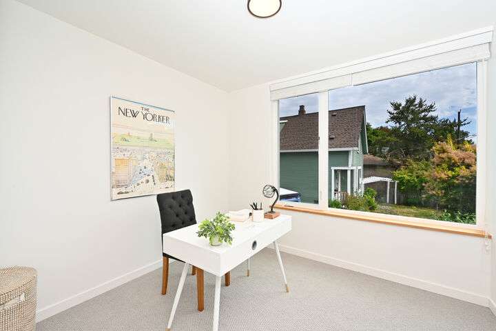 Unbeatable West Ballard location – Net Zero Ready, healthy & green 2020-built home by award-winning Green Canopy Homes. Earth-friendly materials and ~250% more energy efficient systems than typical construction. Lots of natural light, west-facing top-floor deck, A/C & steps to it all. All 3 bedrooms are up with top floor hosting spacious Primary Suite with 2 sinks, walk-in closet, large shower & the west-facing view deck. Upper 2nd floor has 2 beds & full bath & main floor lives like great room with living, dining & kitchen all together. Quick stroll to Ballard scene for coffee/shopping/restaurants & easy bike routes to downtown Seattle and South Lake Union. You will love living here!