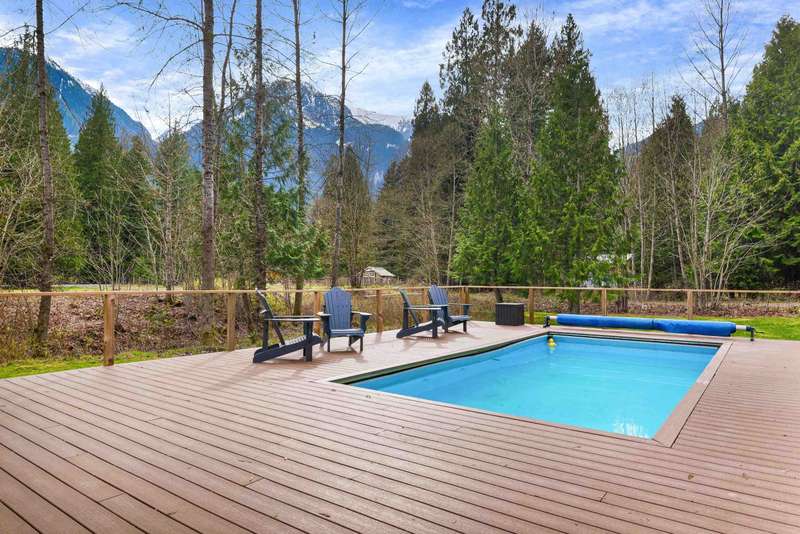 Welcome to your private paradise in Squamish Valley! This 13.63-acre property offers space, privacy, and incredible mountain views. The extensively renovated home features over 2,300 sq.ft. with 3 bedrooms + den, 3 bathrooms, and a versatile nanny suite. Enjoy a new above-ground pool and a massive 3,000 sq.ft. shop-perfect for storing all your tools and toys. Whether you're looking for a serene retreat, room to grow, or a place to play, this property has it all. A rare opportunity to own a slice of Squamish Valley heaven!