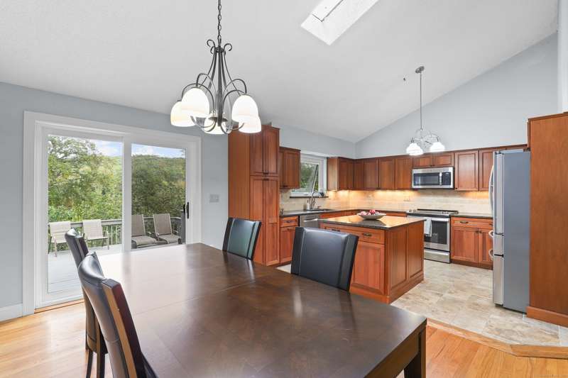 Welcome to 42 Hillside Drive, a thoughtfully updated home in desirable New Fairfield. This residence features a renovated kitchen and bathrooms. The main floor offers an open layout with a spacious living room, fireplace, dining area, and kitchen - ideal for both daily living and entertaining. The finished lower level provides additional living space, complete with a wood stove, making it a perfect spot for a family room, home office, or guest retreat. Set on a private lot, you'll feel like you're in a treehouse as you sit on the large deck overlooking the wooded backyard. This home offers both comfort and convenience, with easy access to Candlewood Lake, schools, shopping, and major commuter routes. Move right in and enjoy all that this inviting home has to offer.