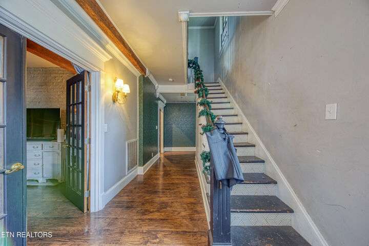 Attention investors or buyers looking for a project to remodel and take advantage of this equity investment opportunity in the historic area of downtown Lenoir City! This two story Colonial- Style home is located in a historic neighborhood in Lenoir City and offers tremendous potential for investors seeking a value-add potential or a growing family with a need for space! With well over 2,000 + Sq Ft of living space and an additional cottage complete with its own kitchen and bathroom above the 2 car garage. This layout provides endless opportunity and flexibility for a full rental, rental conversion or an affordable space and the chance to build equity with updates at your own pace! It's ready for your finishing to truly make it home! Inside you'll find a generous floor plan with multiple bedrooms, giving everyone space and privacy. The large covered front porch is ideal for morning coffee and relaxing evenings, while the yard provides room for outdoor fun, gardening or entertaining! The opportunities are endless!! Additionally, you'll find that significant upgrades have already been made: the main house roof was replaced in 2023, as well as the HVAC system. The tankless water heater was updated just seven years ago. The cottage has also been renovated and features its own electric meter and sewer tap—giving it its own address and utility bill—along with a new roof installed in 2023! Walking distance to restaurants, public library, coffee shop, shopping, parks and conveniently located to medical facilities, interstates, and within 35 minutes from Knoxville. Don't miss out on this incredible opportunity! This is a must see, book your showing now!