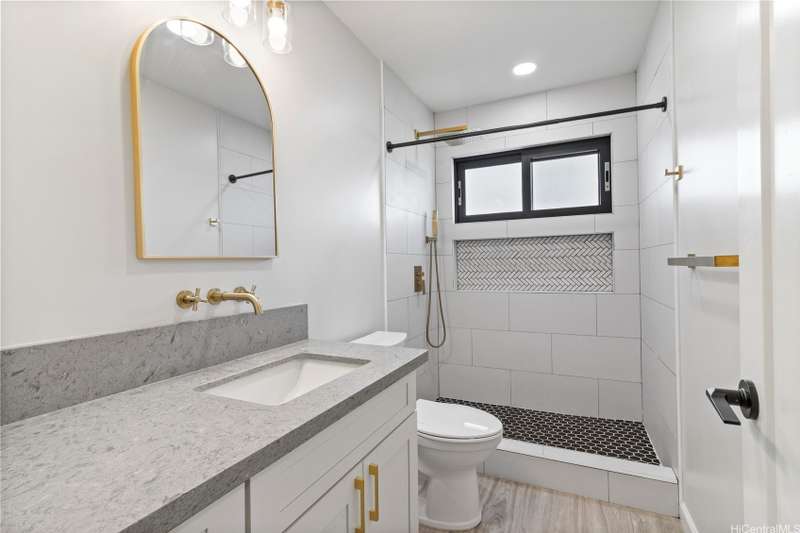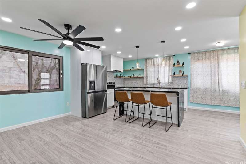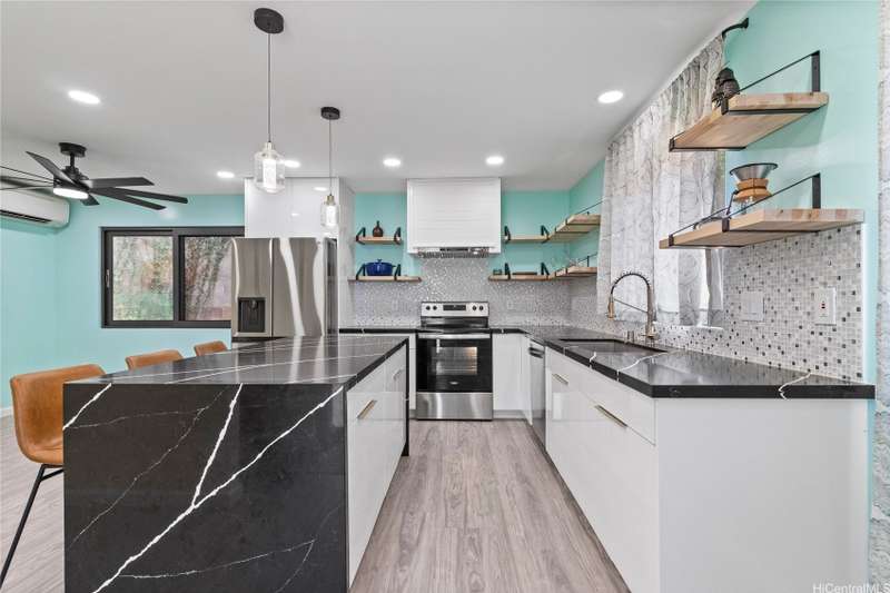 Welcome Home to this modern contemporary styled attached home built in 2023. The home features a gorgeous kitchen with stainless appliances and marble topped island, a first floor bedroom and full bath, and solar water heater. The spacious primary bedroom has a walk-in closet, luxurious shower and deep spa-like tub, and a large covered lanai. The two car garage is equipped with a 220v outlet to charge your EV. Low maintenance living with no yard to maintain.