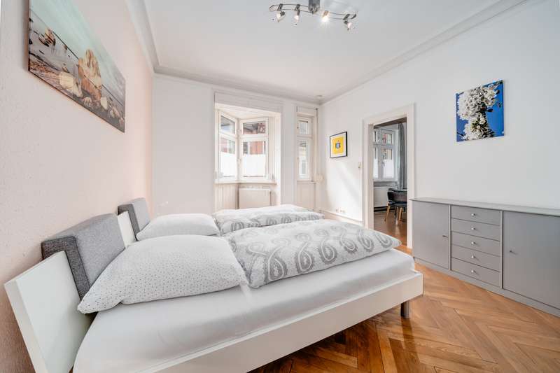 Living in the paradise of Constance This well-kept and charming apartment is located on the 2nd floor of an apartment building with 5 units built in 1902 and offers a living space of approx. 69 m², which is cleverly distributed over three rooms. The building has been continuously maintained and the charm of times gone by has been retained. The apartment is in a ready-to-move-in condition and is ideal for singles, couples, small families or as an investment. The absolute highlight of this property is the existing license for year-round vacation rentals. Upon entering the apartment, you first enter an inviting hallway, which offers enough space for a wardrobe. To the left is the bright living room, which offers room for individual design and also provides enough space for a dining area. The large windows let in plenty of natural light and create a pleasant atmosphere. The living room leads to the cozy bedroom. The third room is directly accessible via the hallway. All three rooms are bright and quiet and offer plenty of space. One of the bedrooms could alternatively be used as a study or guest room. The kitchen has a simple but functional design and offers a large work surface as well as storage space for all kitchen utensils. The practical room layout means that the kitchen is well integrated into the overall look of the apartment. The kitchen is equipped with a fully functional fitted kitchen. From the kitchen you can reach the daylight bathroom with bathtub through another hallway. In the second hallway there is the possibility for a washing machine connection. The bathroom is equipped with a bathtub, a washbasin and a toilet. The furnishings are neat and kept in neutral tones, giving the room a timeless feel. The property is heated by an efficient floor heating system, which ensures a pleasant indoor climate. Additional storage space is provided by a cellar compartment and a storage compartment in the building. The area surrounding the property is characterized by excellent infrastructure. Public transport, shopping facilities, schools and leisure activities are all nearby, ensuring a high quality of life. The central location also offers good connections to the city center. We look forward to hearing from you so that we can present this beautiful property to you in person.