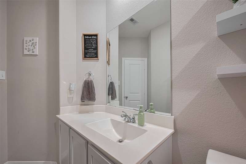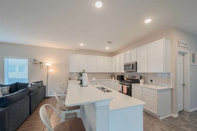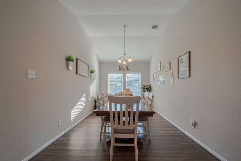Prepare to be awed... imagine, enjoying your private back patio that leads to a sprawling back yard sans back neighbors; yes no back neighbors! This beautiful open-concept Sabine floor plan features 3 bedrooms and 2 full baths. Open the door to and enter the foyer leading to the spacious living room that opens to the kitchen and breakfast room. Preparing meals in the chef's kitchen will be a delight! The owners retreat boasts a sizeable bedroom with an en-suite bathroom featuring double sinks, and a large soaking tub. Vinyl plank floors, quartz countertops, stainless steel appliances all contribute to the aesthetic; what's not to love?! oh and the flex room is a flex!! Easy access to Hwys 6 and 288. Home is zoned to Alvin ISD. It's time to see 2446 Palisade Crest in person... from the curb appeal to the backyard; it will not disappoint!!