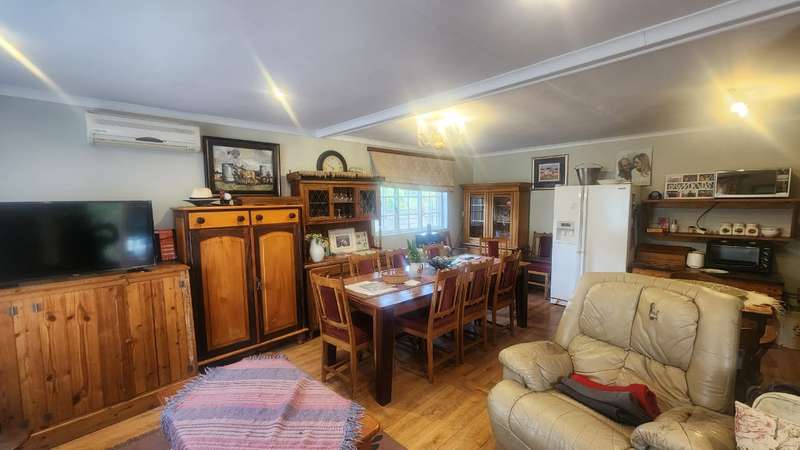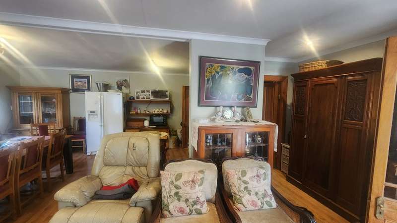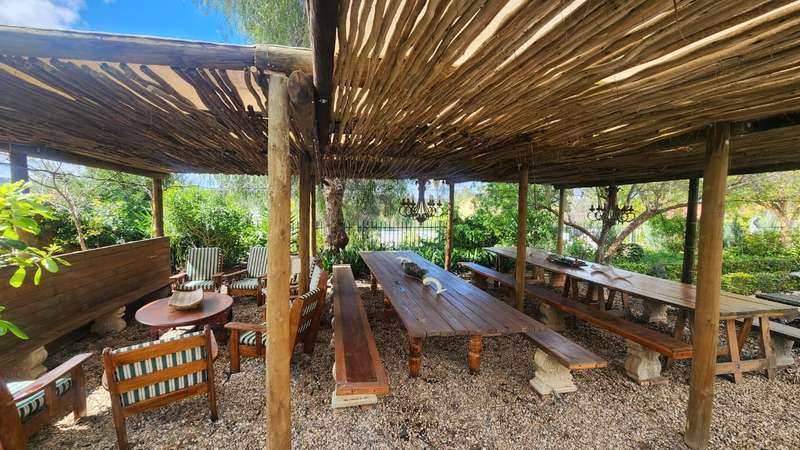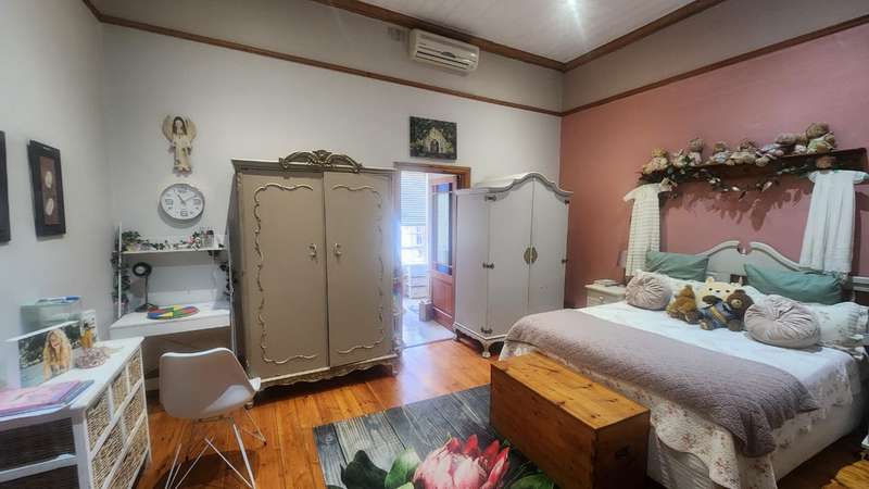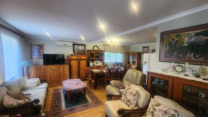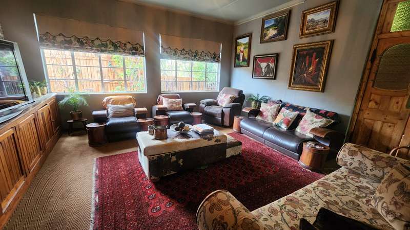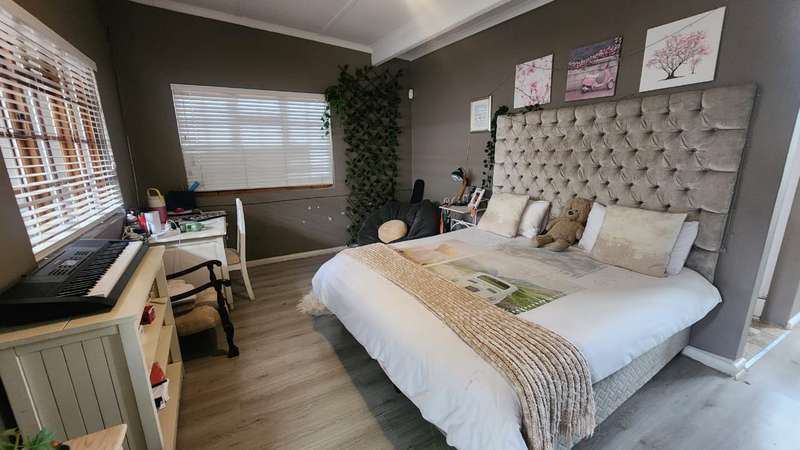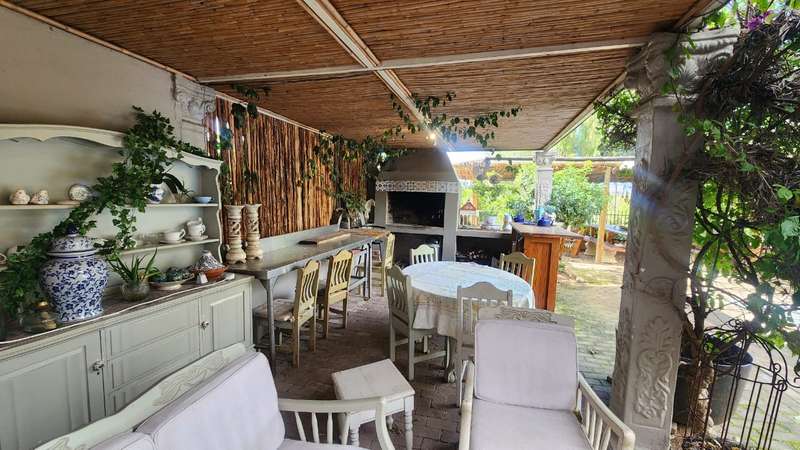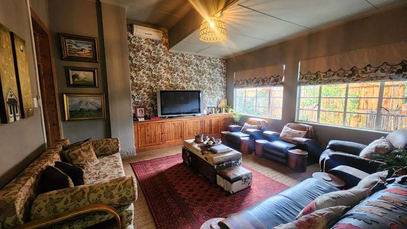 Outeniqua Gables is a charming Cape Dutch home in central Oudtshoorn, blending historic character with modern comforts. Located in a desirable neighborhood, the mansion offers lovely views of the Swartberg Mountains. This beautifully renovated mansion is perfect for those with refined tastes. It features elegant wooden floors, pressed ceilings, chandeliers, and fireplaces, along with a gourmet kitchen and a utility studio for creative projects. Spanning 520 square meters, it features around 11 rooms, including a grand lobby, a one-bedroom flatlet with its own entrance, and spacious living areas. The main house offers three large bedrooms with ensuites and a separate bedroom. The property also includes a larger kitchen suited for catering and hosting small events. Additional highlights include a separate laundry, well-kept garden has ample space for children, including a fun tree house with a swimming pool and covered entertainment area. With air conditioning in all bedrooms, four fireplaces, parking for up to 6 vehicles, and modern amenities like a 5kVA solar system, this gem seamlessly combines elegance and practicality