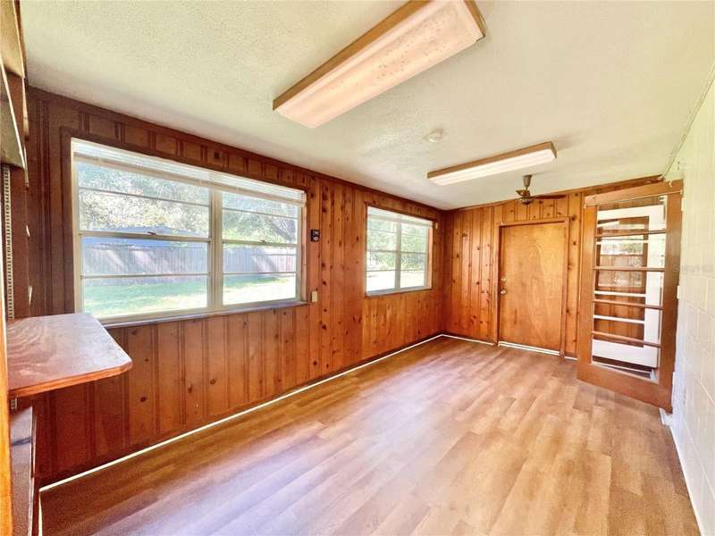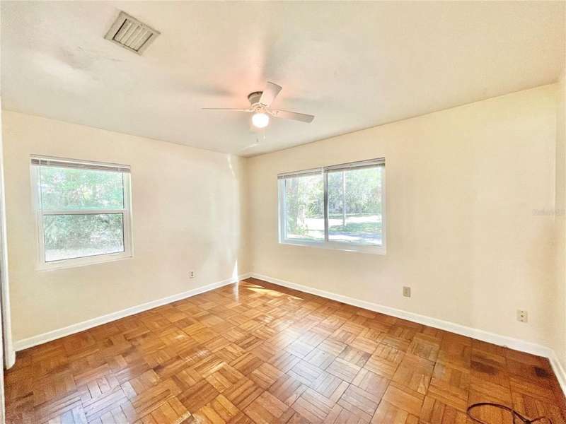 Walk or bike to the University of Florida! Semi-handyperson special!! Architectural roof was installed in 2012, some windows, new insulation and HVAC in 2021, re-plumbed & new water heater in 2017. Mostly needs cosmetics. Parquet wood floors in the great room, dining area, hallway and 3 bedrooms. Flex room/4th bedroom does not have a closet, it has an Armoire. Bonus room behind the kitchen has many possibilities. Large backyard ready for outdoor enjoyment. Great location close to the university, hospitals, movie theater, Publix marketplace and all kinds of shopping and dining options. Ideal for students, rental, or short term rentals like AiRBnB, Verbo, etc.. Concrete driveway plus extra parking (gravel).
