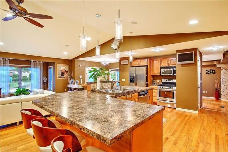 Located in sought-after Riverview Estates, this oversized ranch brings together an expansive 4 bedroom, 2 bath property with a remarkable lower level that opens the door for true multi-generational living. The main floor offers an oversized dining room, spacious kitchen with center island, a large primary bedroom with en-suite bath and ample additional bedroom spaces. The lower level is a standout, nearly finished with a full kitchen, 2 additional bedrooms, a large family room, and laundry, providing the perfect setup for in-laws, extended family, or long-term guests who need their own space. A three-season room flows naturally to multiple decks and outdoor spaces. Outside, the property transforms into a practically perfect oasis, with beautifully maintained, park-like grounds surrounded by dozens of mature arborvitae and is fully fenced for privacy. A heated 24-foot above-ground pool with wraparound deck serves as the centerpiece, with a custom outdoor grill and bar with mini fridge, creating a backyard designed for being the life of the party! Two sheds provide storage options, sprinklers ensure the grounds remain lush, and the home is wired throughout with a stereo system with individual room controls. With its combination of a generous living space, flexible in-law accommodations, and outdoor amenities, this home meet the needs of today’s multi-generational lifestyles. 4 Lake awaits its next caretaker...