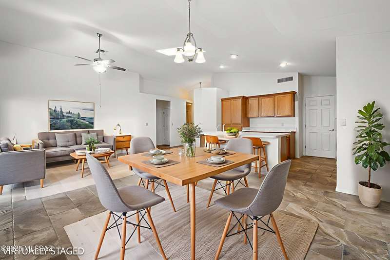 Charming, clean 2BR plus Den home in the Coves at Voyager. This tiled roofed home features stylish ceramic tile throughout. Great room with high ceilings includes island kitchen, perfect for entertaining. Updated primary bathroom. Low care front and back yard, covered patio. Roomy garage with cabinet storage. This gated community features Pool, Spa, Tennis/Pickleball Courts, Shuffle Board, ideal for the active resident. Home has had polybutylene piping replaced. Contact listing agent for your own personal showing.