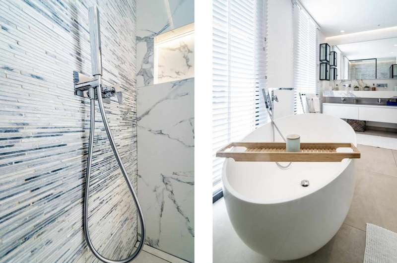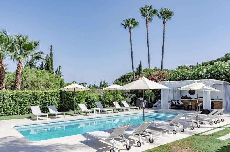 Located on a peaceful cul-de-sac, the villa benefits from an elevated, south-facing position, offering stunning views and an abundance of sunlight throughout the day. As you enter, you'll be welcomed by impressive vaulted ceilings and large floor-to-ceiling windows that flood the space with natural light. The main level features a sophisticated Santos kitchen with an open-plan layout and Siemens appliances, seamlessly connecting to spacious living and dining areas that lead out to a terrace ideal for outdoor dining. The ground floor also hosts a luxurious master suite, complete with a walk-in closet and an en suite bathroom. Above, a dedicated office/study area with steel-framed windows provides tranquil views overlooking the living space. On the upper level, you'll find two additional bedrooms and bathrooms, with one bedroom offering enchanting views of the sea and garden. The lower level is designed for entertainment, featuring a generous playroom/TV area and a climate-controlled