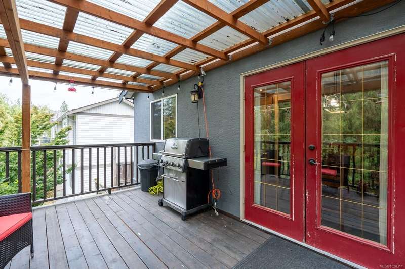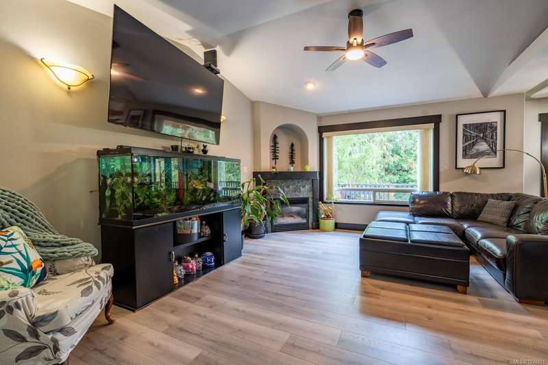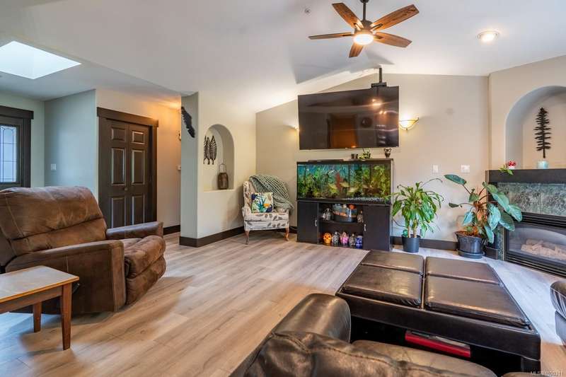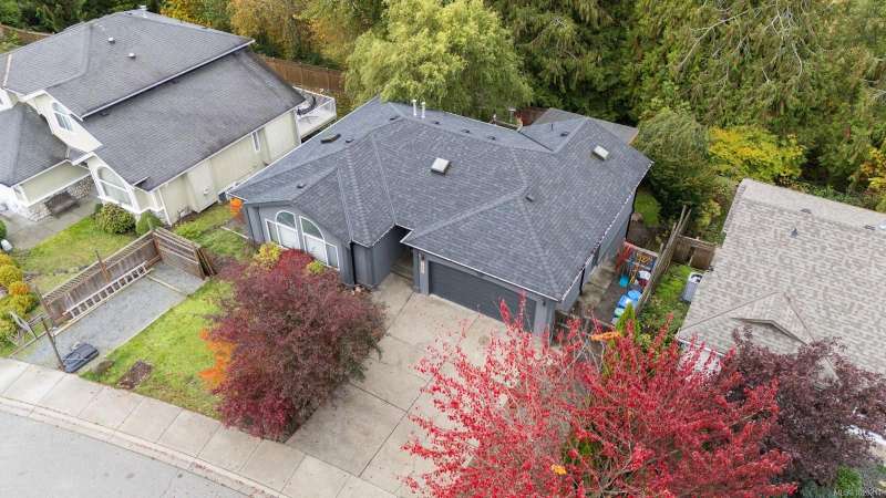 OPEN HOUSE November 29th 1:30pm to 3:00 pm. You could be all moved in for Christmas! Welcome to 1941 Kells Bay, a beautifully maintained 4-bed, 3-bath home in Cinnabar Valley on a no through road. This bright, spacious residence features an open living area with a cozy gas fireplace and an updated kitchen with quartz countertops, stainless-style appliances, and a pantry. The primary suite offers a walk-in closet and 4-piece ensuite, with two additional bedrooms and a full bath completing the main floor. The redone basement adds versatility with a large rec room, bedroom, 4-piece bath, laundry, and storage—easily suited for family or income potential. Enjoy the private patio backing onto Richards Marsh Park, fresh paint, new laminate flooring, newer roof, & a storage shed. Close to schools, parks, & amenities, this move-in-ready home blends comfort, updates, & a prime location in one of Nanaimo's most sought-after neighbourhoods. All measurements are approx, please verify if important.