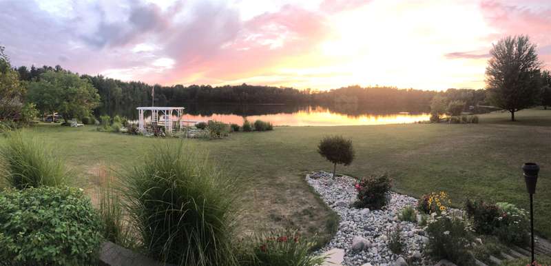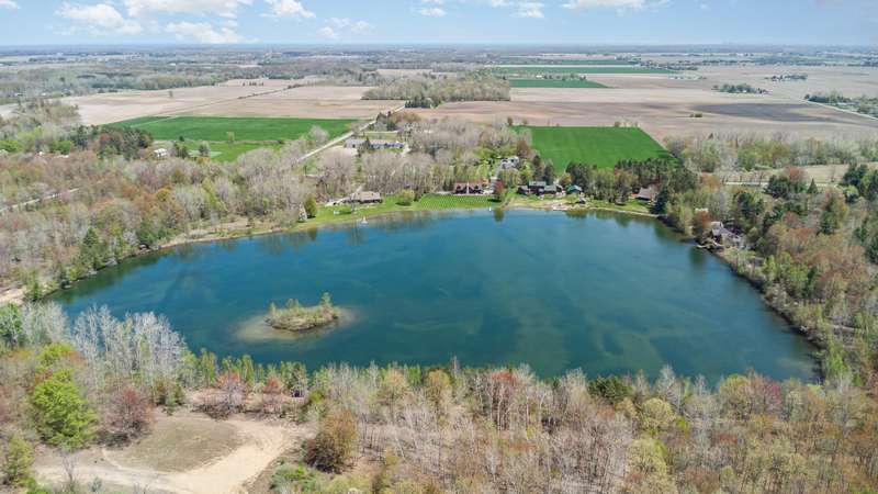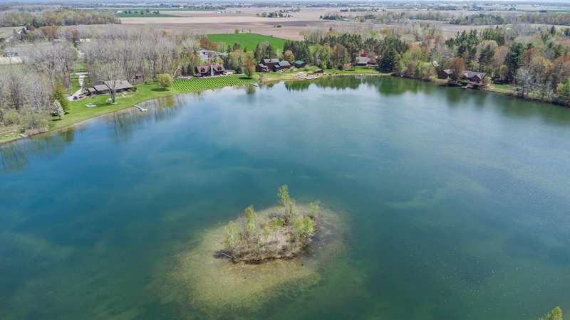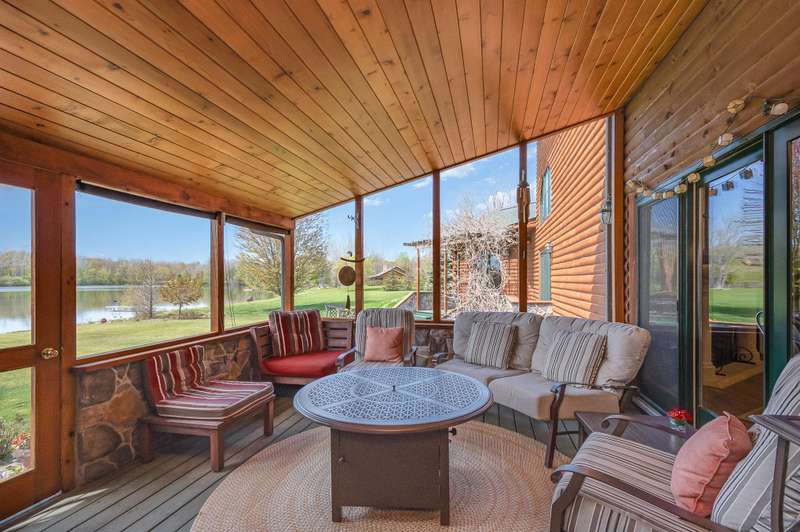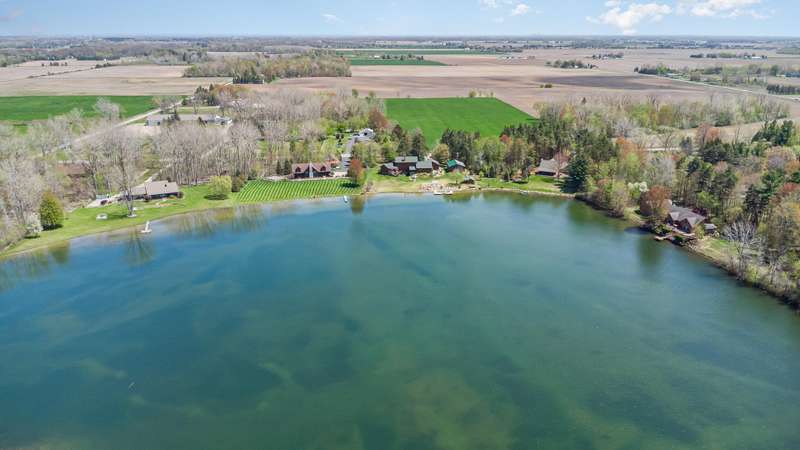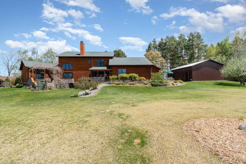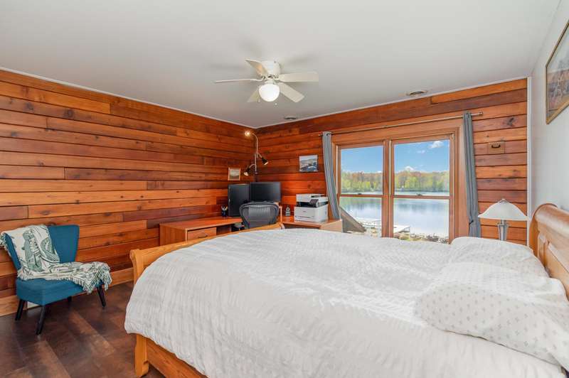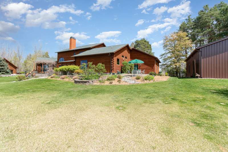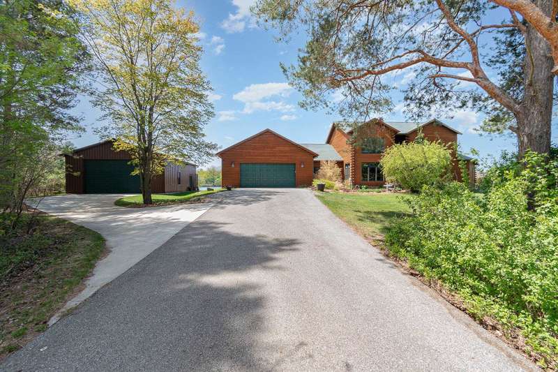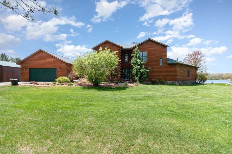 Experience the ultimate in “Up North” living within close proximity to Midland (17 minutes) and Bay City (10 minutes) in this stunning waterfront cedar log home, nestled on 3 private acres and offering part ownership of a pristine 33-acre private lake. Enjoy breathtaking sunset views from nearly every room, with the tranquility of nature just outside your door. Step inside to discover a one-of-a-kind interior, where craftsmanship and luxury meet. The gourmet kitchen features cherry cabinetry, an island topped with granite bedrock, and a breakfast nook that flows seamlessly into a welcoming living area anchored by cherry wood flooring and a striking limestone mantel. Cozy up by the family room fireplace, or retreat to the primary suite with its own two-sided fireplace, a soaker tub, and a private deck overlooking the water. Relax for hours in the enchanting screened porch (14x14) facing the lake--perfect for morning coffee, reading, or sunset watching. Additional outdoor living spaces include a lakeside pergola, fire pit, and a private dock for easy access to the water. Upstairs, you’ll find a spacious loft, two bedrooms, and a full bath, while the partially finished basement offers egress windows, a fourth bedroom, and energy-efficient spray foam insulation throughout the basement and crawl spaces. For your storage and hobby needs, a 30x40x12 pole barn (built in 2020) provides ample space with potential for a loft, plus a 12x20 storage shed for all your lake toys. The home is equipped with city water, natural gas, and a new roof installed in 2017. This exceptional property blends the serenity of lakeside living with luxurious details and modern conveniences--your perfect retreat awaits!