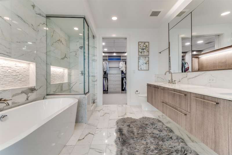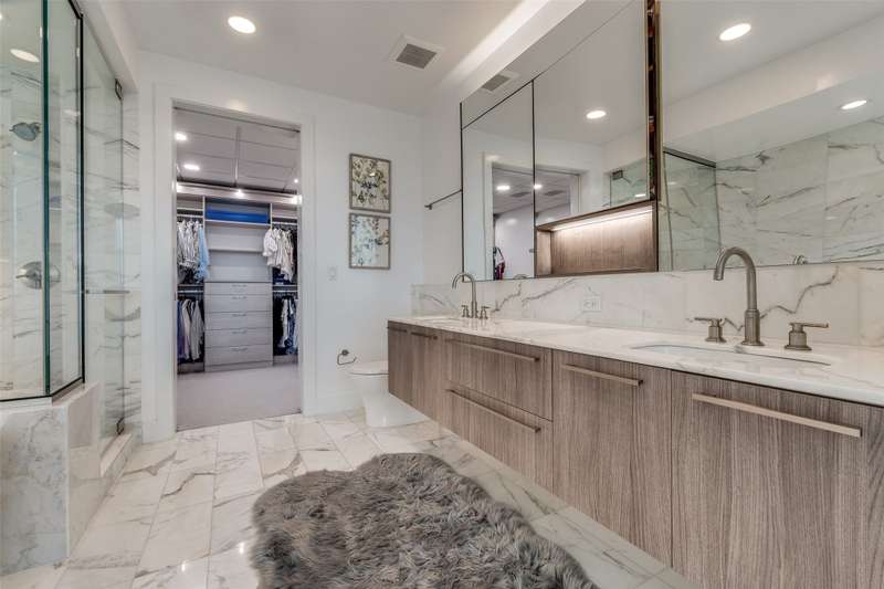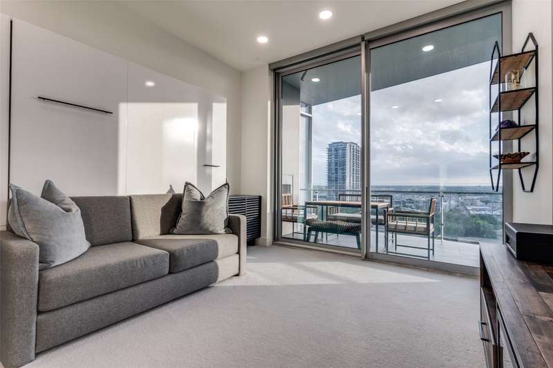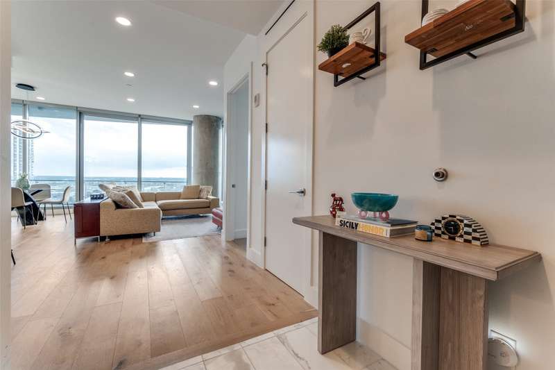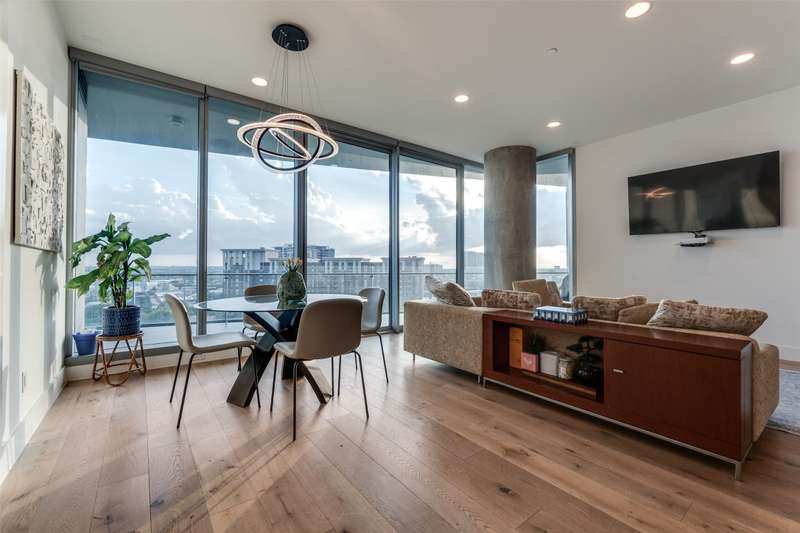 Welcome to an extraordinary opportunity to reside at Blue Ciel, one of Dallas' most prestigious addresses. This well-equipped 2 bedroom, 2.1 bath residence offers breathtaking southwest-facing city views through it's expansive, floor-to-ceiling windows. Bathed in natural light, the open-concept design flows seamlessly from the sophisticated living area to a chefs kitchen featuring Miele appliances, sleek custom cabinetry, and a designer pendant lighting. The primary suite, complete with a lavish spa-inspired ensuite boasting a freestanding soaking tub, frameless glass shower, and a floating double vanity. Enjoy commanding 180-degree skyline views from your private balcony with an elegant fireplace. Additional features include California Closets in both rooms, a two-car garage, a climate-controlled storage unit, direct access to the Katy Trail, and exclusive world-class amenities curated for the most discerning tastes.