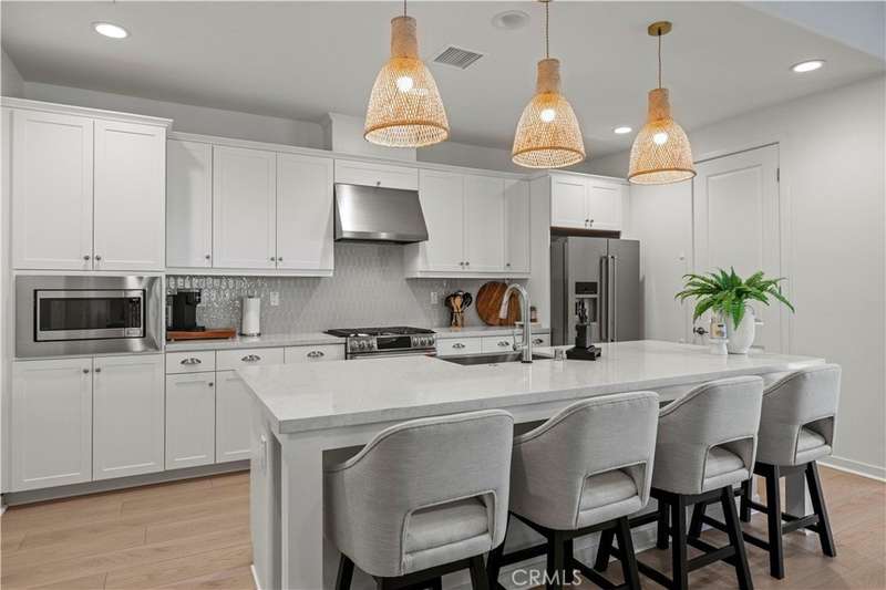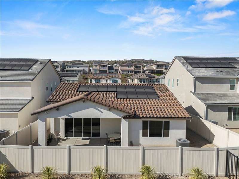 Contact listing agent Marite Matassa with questions or for details 818-605-1220. Upgrades Galore in this single story new-build (built in 2024) Luna Plan 4, turnkey home! Step into luxury, comfort, and convenience in this impeccable residence—possibly the most upgraded in the community! With paid-in-full solar and a whole-home smart tech system, it’s truly move-in ready—no projects, no waiting, just sit back and enjoy. Inside, you’ll find a light-filled open floor plan centered around a chef’s dream kitchen, complete with stainless steel appliances, gas oven/stove top, custom cabinetry, quartz countertops, stunning designer backsplash, and an oversized center island with upgraded quartz. Every detail has been thoughtfully selected, from the stylish black plantation shutters to the sleek black, wood, and stainless steel finishes throughout. Boasting three full bathrooms (a rarity in this community)—the primary suite is your private retreat, featuring a spa-like en suite with barn doors, a large walk-in closet, dual sinks, and luxurious finishes. The front and backyard are a blank canvas, ready for you to create your personal outdoor oasis with an already built deck off the living room featuring a high ceiling. Located in a sought-after community, you’ll enjoy resort-style amenities including pools, spas, a clubhouse, BBQ areas, playgrounds, and more. A perfect blend of modern elegance and everyday functionality—soon-to-be walking distance to a school and now park, this home is ready for you to make it yours. Schedule an appointment today!