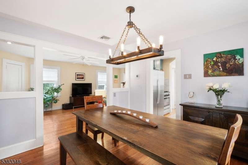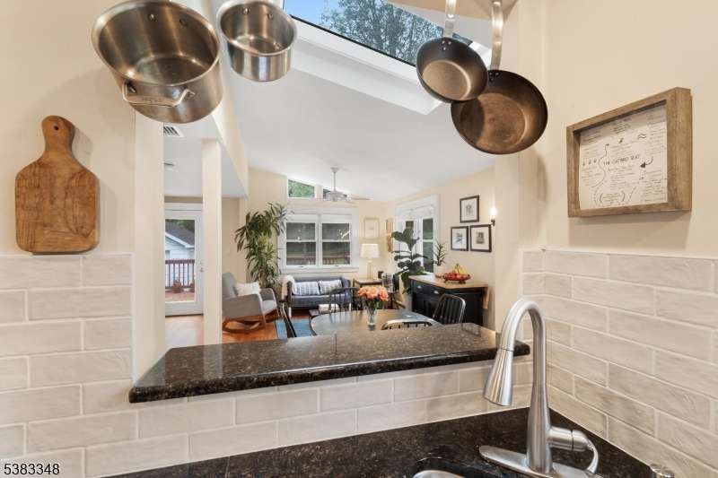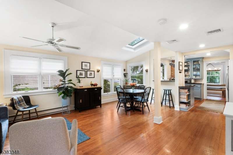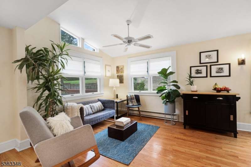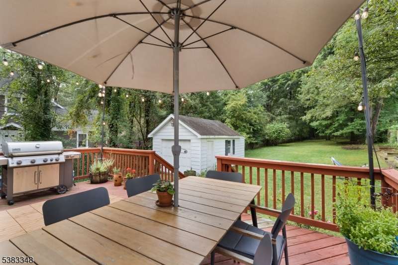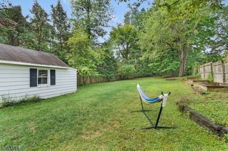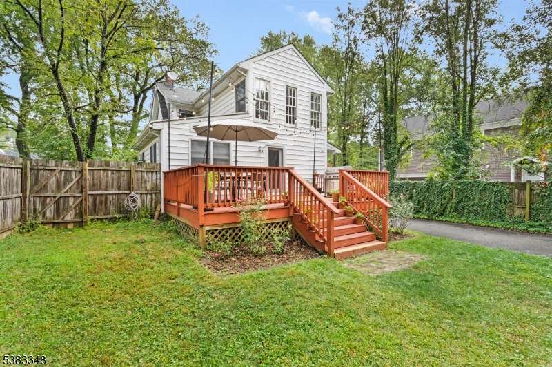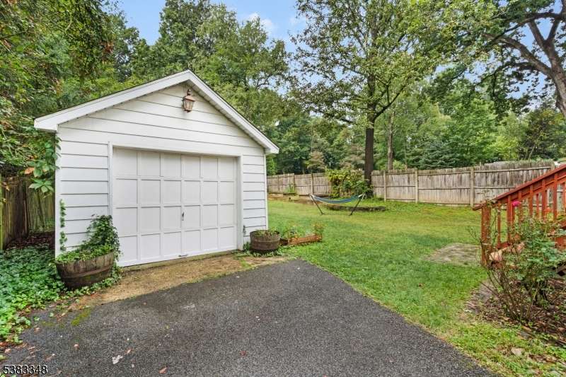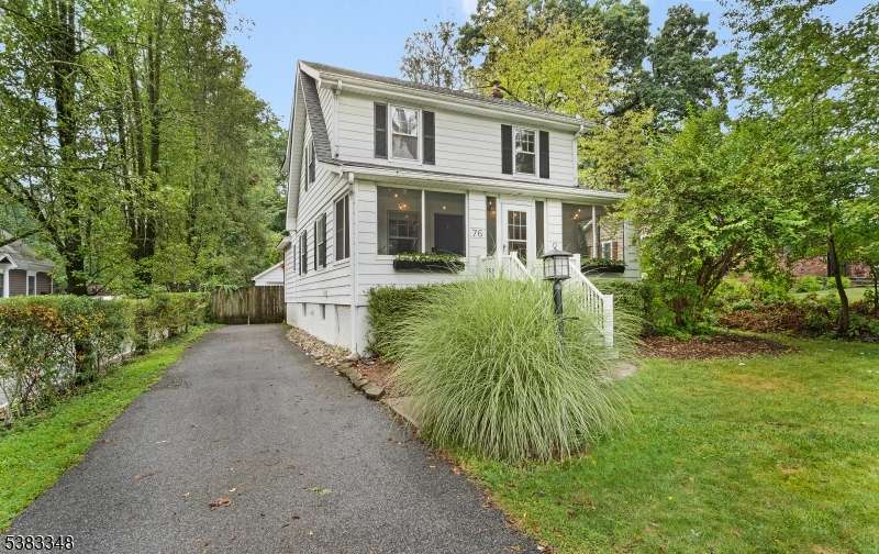 Welcome to this warm and inviting Colonial, located in the heart of Florham Park on one of its most desirable streets. A charming screened front porch with a classic swing welcomes you in and sets the tone for the character and comfort inside. The main level features a lovely living room and dining room that flow into the updated kitchen, complete with a breakfast bar, eat in kitchen, Caesarstone quartz dry bar, and beverage fridge. Just off the kitchen is a bright family room, perfect for everyday living and gathering. Step outside to a generous deck overlooking a fenced in serene backyard- nearly half an acre of peaceful, park-like grounds ideal for entertaining, relaxing, or play. A detached one-car garage and long driveway provide ample storage and outdoor space. Back inside, a mudroom with built-in cubbies and a full first-floor bath add convenience and function. Upstairs, you'll find four bedrooms, including a vaulted-ceiling primary suite with a private ensuite bath. The remaining bedrooms share a hall bathroom. Downstairs, the finished basement offers even more living space, currently used as a playroom but easily adapted for a gym, rec room, or media space. The storage area includes laundry and updated utilities.This home truly has it all - timeless charm, thoughtful updates, and a premier location in the heart of town. Don't miss your chance to make it yours!