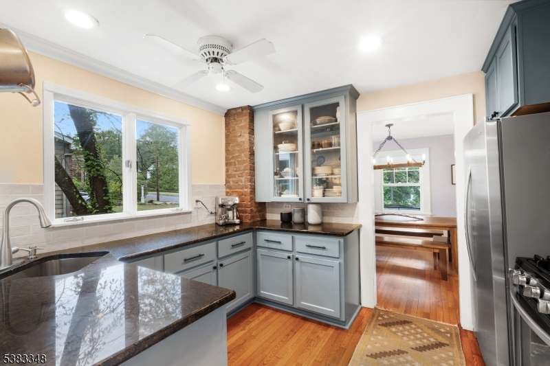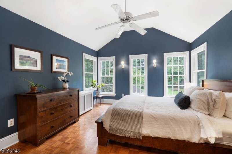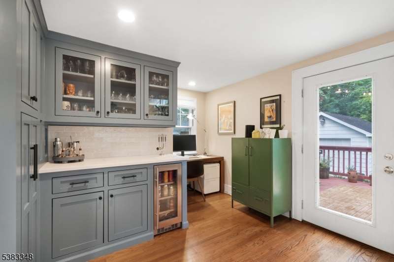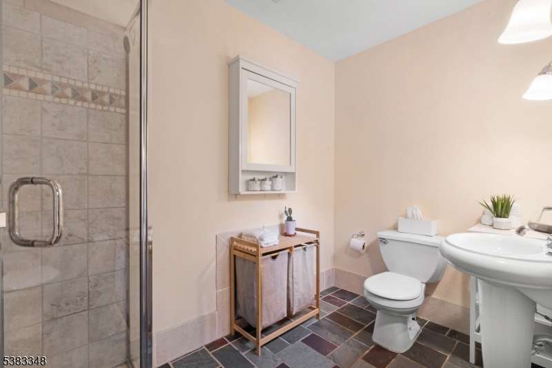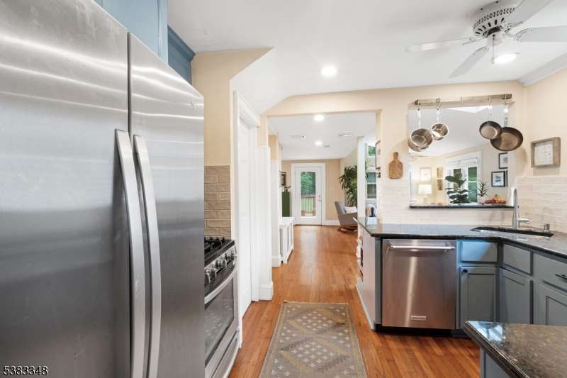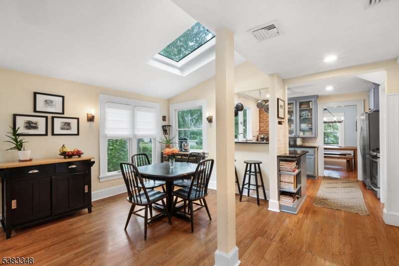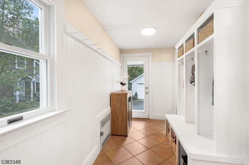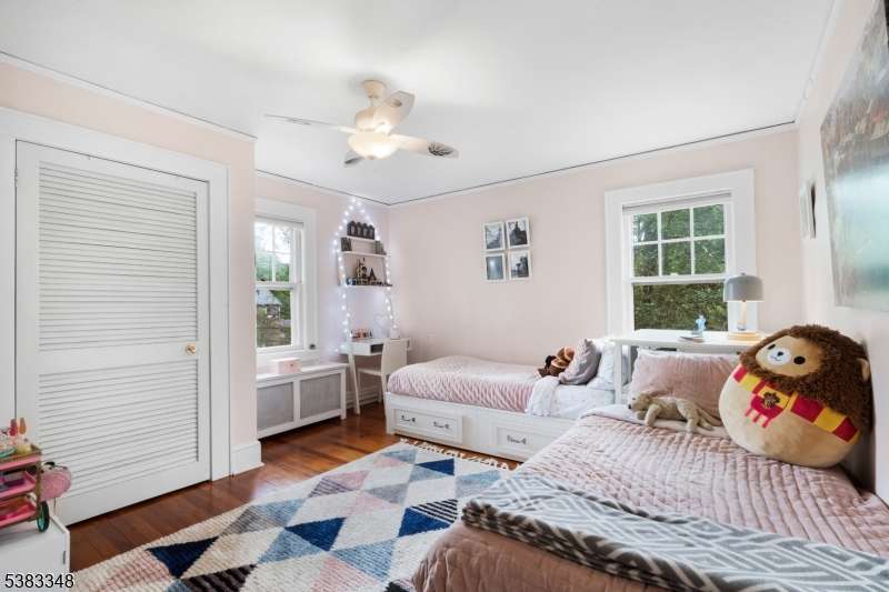 Welcome to this warm and inviting Colonial, located in the heart of Florham Park on one of its most desirable streets. A charming screened front porch with a classic swing welcomes you in and sets the tone for the character and comfort inside. The main level features a lovely living room and dining room that flow into the updated kitchen, complete with a breakfast bar, eat in kitchen, Caesarstone quartz dry bar, and beverage fridge. Just off the kitchen is a bright family room, perfect for everyday living and gathering. Step outside to a generous deck overlooking a fenced in serene backyard- nearly half an acre of peaceful, park-like grounds ideal for entertaining, relaxing, or play. A detached one-car garage and long driveway provide ample storage and outdoor space. Back inside, a mudroom with built-in cubbies and a full first-floor bath add convenience and function. Upstairs, you'll find four bedrooms, including a vaulted-ceiling primary suite with a private ensuite bath. The remaining bedrooms share a hall bathroom. Downstairs, the finished basement offers even more living space, currently used as a playroom but easily adapted for a gym, rec room, or media space. The storage area includes laundry and updated utilities.This home truly has it all - timeless charm, thoughtful updates, and a premier location in the heart of town. Don't miss your chance to make it yours!