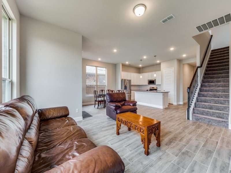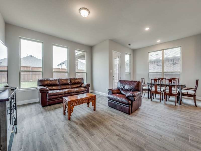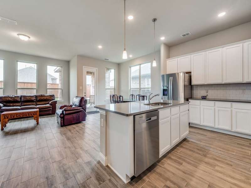 This impressive 2-story home in Glenn Crossing truly stands out with its well-thought-out design and modern amenities. The open concept layout is perfect for families and social gatherings, allowing for seamless movement between the kitchen, breakfast nook and family room. The kitchen is a chef's dream featuring stylish 42 inch cabinets that provide ample storage along with sleek stainless steel appliances, including a gas range and microwave. The upgraded countertops not only enhance the aesthetic appeal but are also practical for meal preparation. The barstool area offers a casual dining option, while the pantry ensures that all your essentials are within reach. The primary suite is a highlight of the home designed as a peaceful retreat. The luxurious bathroom includes a separate tub and shower, dual vanities for convenience and a spacious walk-in closet, making it a perfect sanctuary for relaxation. With 10 foot ceilings and eight foot doors on the 1st floor, the home feels open and airy. The secondary bedrooms are generously sized, providing comfort for family members or guests. The upper level adds to the homes versatility, featuring two additional bedrooms and a full bath, along with a special game room that can be used for entertainment or as a play area. The outdoor setting is equally appealing, with a home positioned adjacent to a green belt and across from a serene community pond, perfect for enjoying nature. The community itself offers a variety of amenities, including a pool, fishing ponds, walking trails, and green spaces, fostering an active and engaging lifestyle. Conveniently located near restaurants, shopping centers, and major highways, this home not only offers comfort and style but also provides easy access to everything you need for day-to-day living. Whether you're looking for a family home or a place to entertain, this property is a fantastic choice.