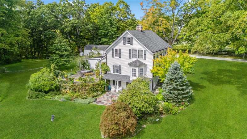 Lovingly renovated historic estate offering state-of-the-art features while preserving its original charm and character. Once known as Half Moon Farm and home to the areas largest agriculturalist, Mr. Barrett, the property has been thoughtfully restored and modernized by the owners, internationally acclaimed photographer Alexi Lubomirski and his wife, Giada. Set amongst 100-year-old maple trees, it retains a timeless, historic feel while providing all the modern comforts desired in a weekend getaway or full-time retreat.Entering the home, the inviting foyer leads to a spacious living room complete with a library nook, window seat, and wood-burning fireplace. The newly renovated kitchen features custom cabinets with antique accents, a gas stove, butcher block counters, and a custom stone backsplash with adjacent pantry. The kitchen and living room open seamlessly to an herb and rose patio garden, dining area, and reading corner. Upstairs are three light-filled bedrooms with new carpet and ample closets. The walk-out lower level, not included in the square footage, has been fully finished with heated floors and a full bath with clawfoot tub.Outdoors, enjoy a majestic heated gunite saltwater pool with outdoor shower and a one-of-a-kind stone diving board quarried on site. Recent upgrades include new roofs and gutters (2014), updated HVAC, new water heater, and a whole-house generator. The property also includes several outbuildings: a large storage shed, wood shed, and garden shed. Ideally located less than five minutes from the private Sedgewood Club (membership required), offering lake access, tennis, and golf 15 minutes from the train and just an hour from NYC.