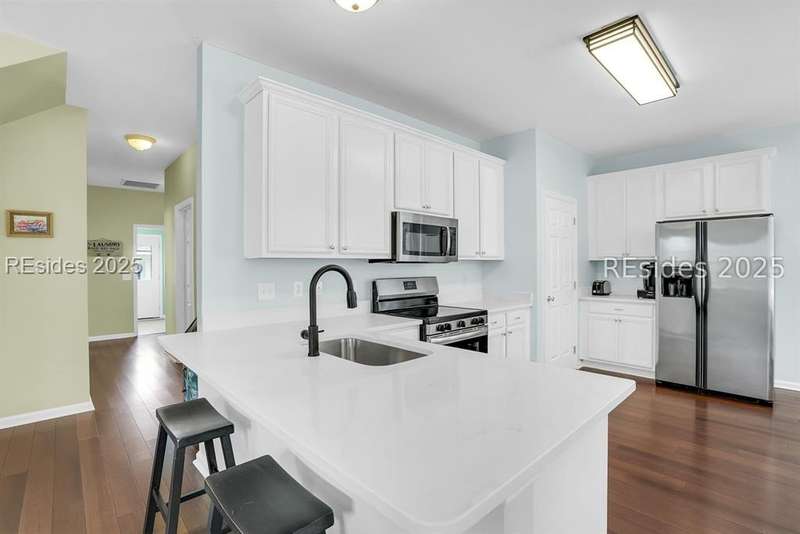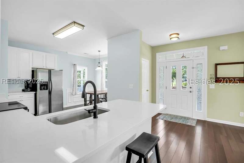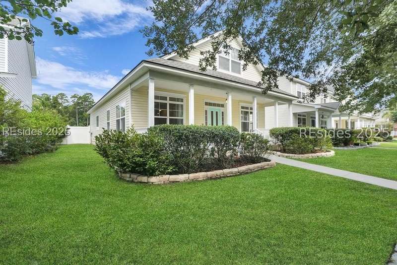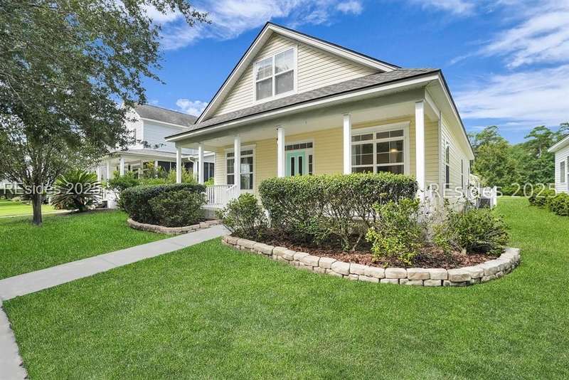 Located in the highly sought-after Bluffton Park neighborhood, this charming 3-bedroom, 2-bath home with spacious bonus room offers the perfect blend of functionality and location for Lowcountry living. Just a quick golf cart ride to Old Town Bluffton and within easy access to Oscar Frazier Park, the location can't be beat. Practical upgrades include a new roof and a new water heater for peace of mind. A welcoming front porch with a view of Oscar Frazier park opens into a move-in ready interior featuring hardwood floors throughout and tile in the bathrooms. The kitchen has been beautifully updated with new quartz countertops and features stainless steel appliances. Several spacious closets, walk-in attic space, and a detached two-car garage add both convenience and plenty of storage space. A fenced-in backyard overlooks a tranquil lagoon, offering a serene setting. Bluffton Park residents enjoy community amenities such as a pool, playground, and walking trails. With modern updates, flexible living spaces, and a highly desirable neighborhood, this home is truly a must-see!