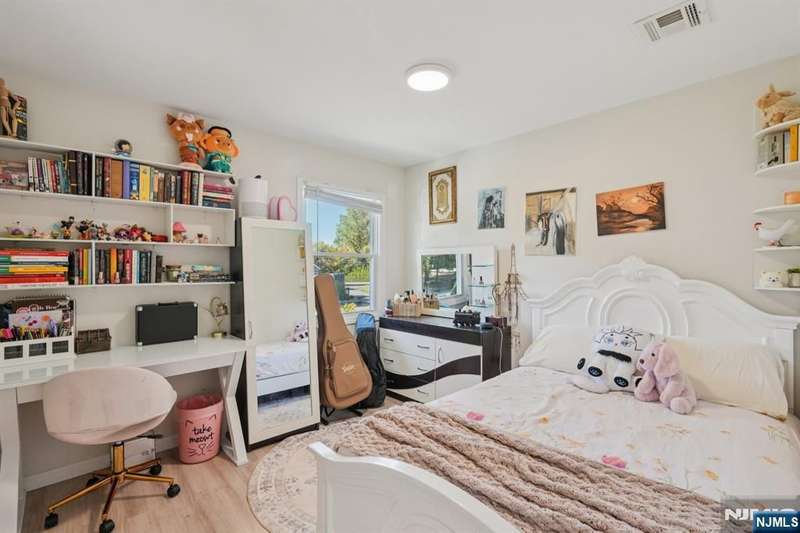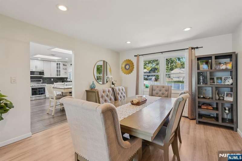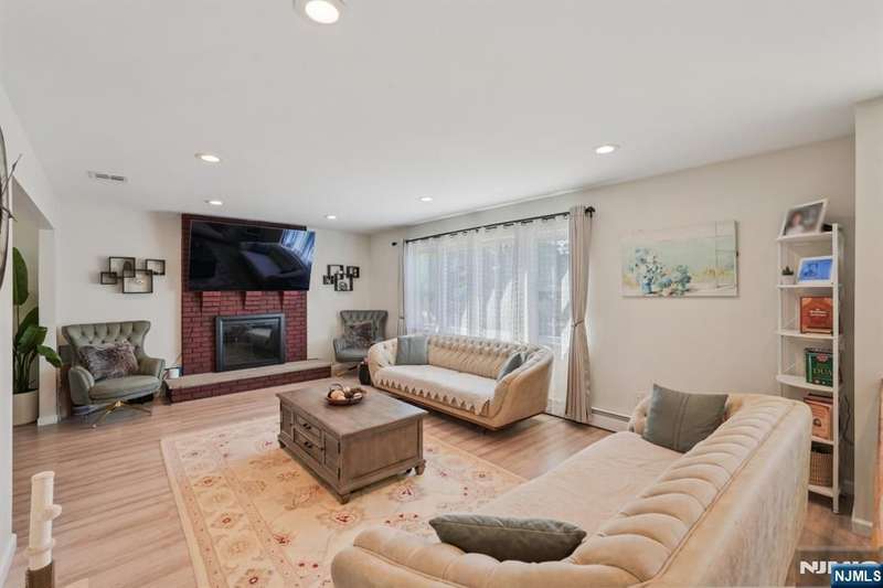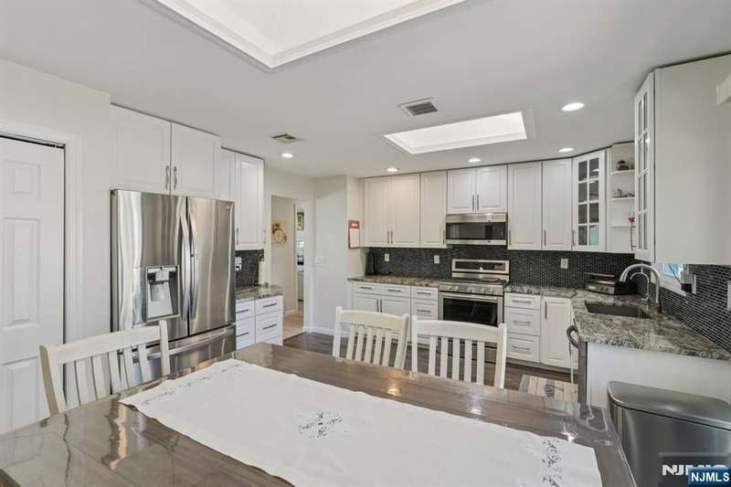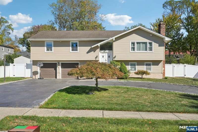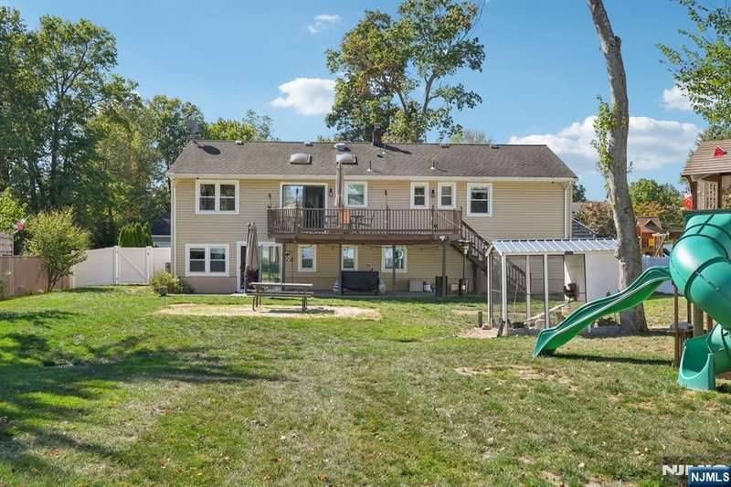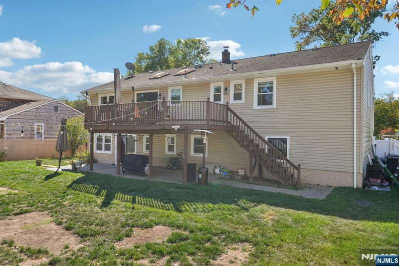 Welcome home to this well-maintained Bi-Level nestled on a large, private lot in the heart of Wayne. Step into the bright and welcoming entry foyer that leads upstairs to the main living area. The sunlit living room offers a large window and cozy fireplace, creating a warm atmosphere for relaxation and conversation. A wide cased opening leads into the elegant dining room, a cheerful setting for both intimate dinners and lively gatherings. The dining room flows seamlessly into the tastefully updated eat-in kitchen, a chef's delight with custom cabinetry, marble countertops, stylish backsplash, stainless steel appliances, pantry, skylights and separate dining area. Sliding glass doors open to a spacious rear deck, perfect for al fresco dining and outdoor entertaining. Down the hall, the primary bedroom features a walk in closet, bonus closet and en suite, while 2 additional bedrooms and full bathroom complete the level. The ground floor offers versatile living with a comfortable family room, an additional bedroom, den laundry room, full bathroom, and garage entrance. From the family room, step outside to the patio overlooking the fully fenced backyard an ideal space for grilling, recreation, and creating lasting memories. Additional highlights include a 1-car attached garage and spacious parking with driveway and circular drive. Conveniently located near NYC transportation, shopping, and dining, this home perfectly blends comfort, style, and convenience for today's lifestyle.