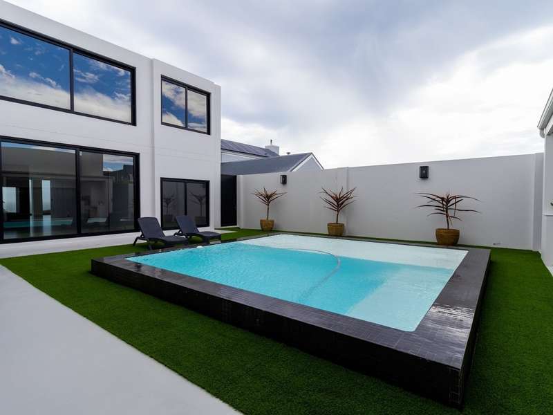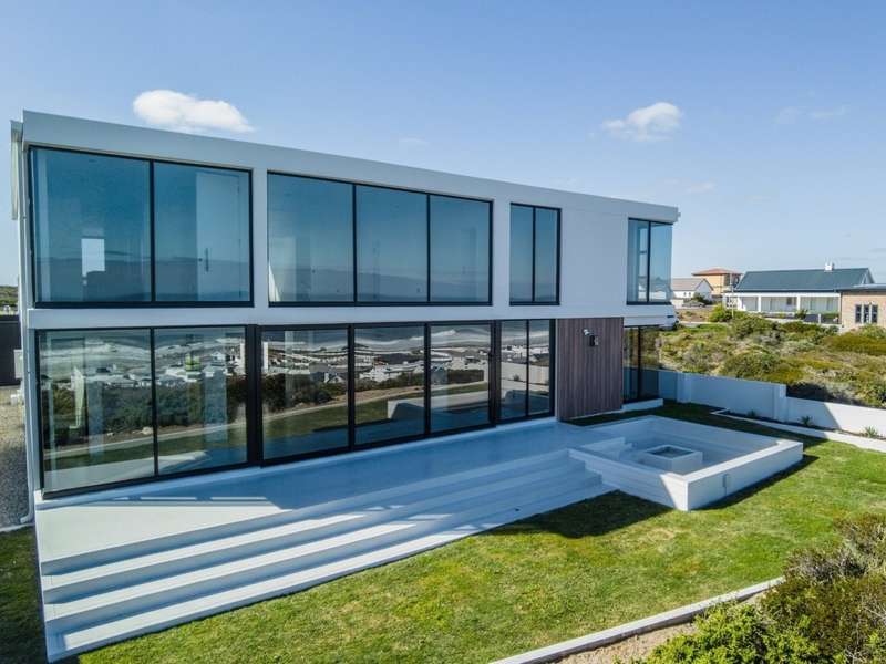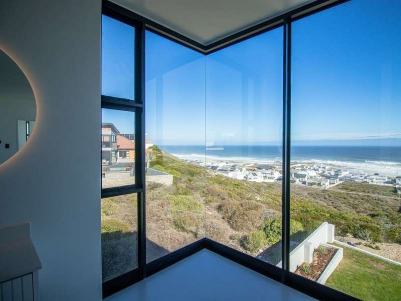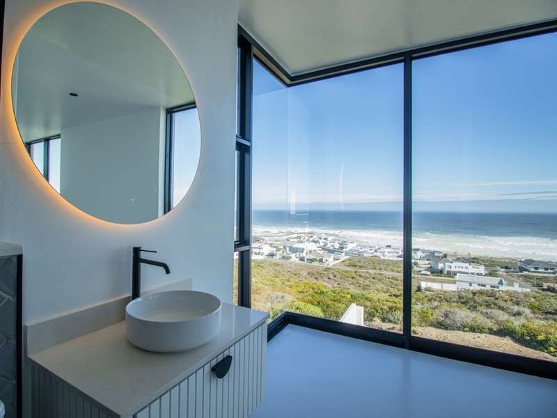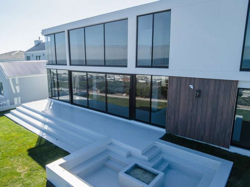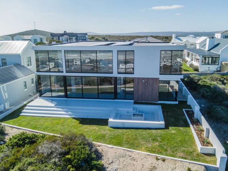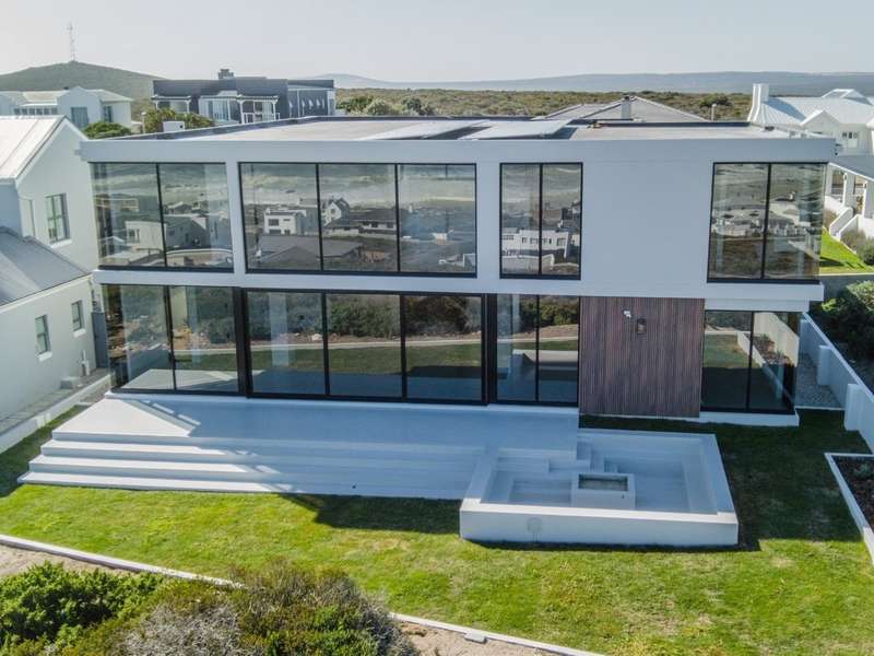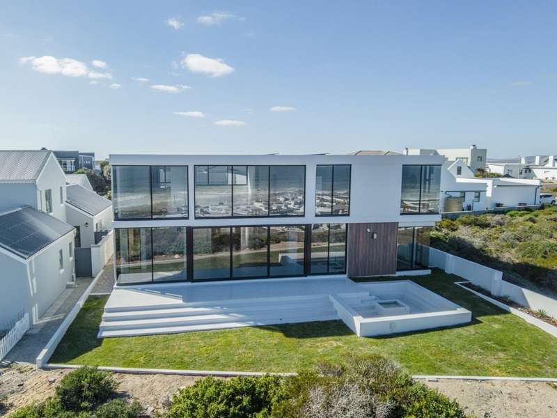 Set along the ever popular Ridge, this extraordinary home boasts views that stretch as far as the eye can see. The sheltered embrace of the U-shaped design and its rim-flow pool reflects the majestic architecture with the captivating ocean views as the backdrop. The kitchen has sliding doors opening onto the pool area. A jaw dropping centre island adorned with beautiful light fittings steal the show. It's both a functional workspace and a striking focal point. Floor-to-ceiling cupboards show casing a wine display and an integrated rotisserie/braai including a large scullery makes this, the perfect kitchen. Beyond the kitchen lies the living space. Glass sliding doors, reaching from floor to ceiling, frame the vistas over the adjacent green belt and provide a constant reminder of the coastal paradise below. On the upper level, views continue to unfold. The family room features a kitchenette and is a perfect vantage point to admire the beauty of Yzerfontein's coastline, from Table Mountain to Dassen Island. The master suite with its walk-in closet is luxuriously finished with glass display units and an illuminated mirror, add a touch of glamour. With a total of six en-suite bedrooms, and a guest bathroom, space and privacy is never an issue in this lavish abode. Elegance abounds at every turn, from the use of timber, glass, the finest finishes and other beautiful touches, this home leaves nothing to be desired. It's the ultimate modern entertainer's villa!