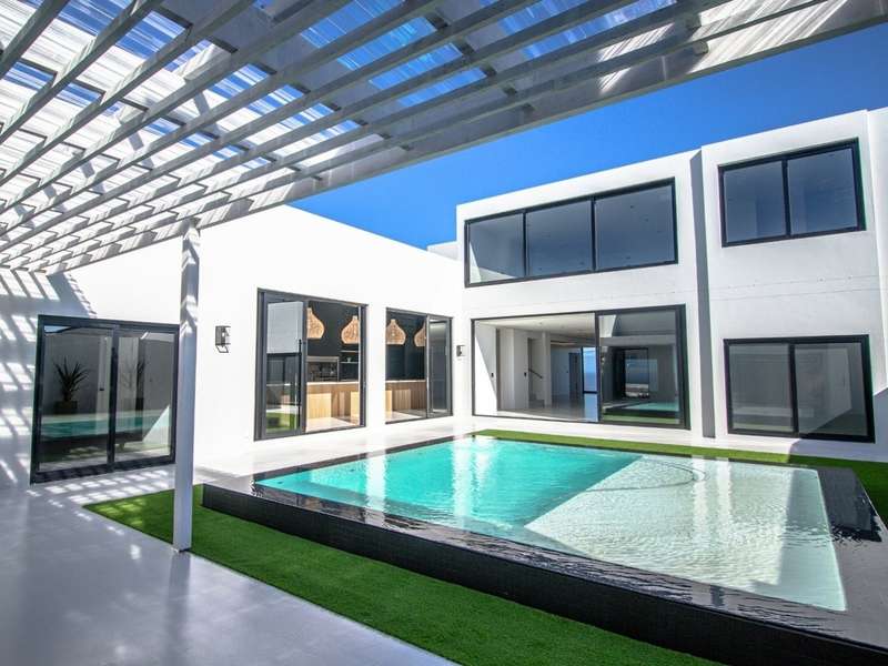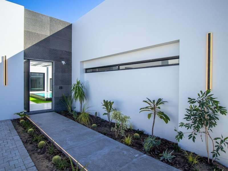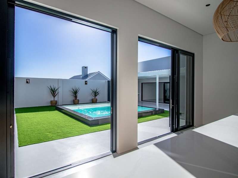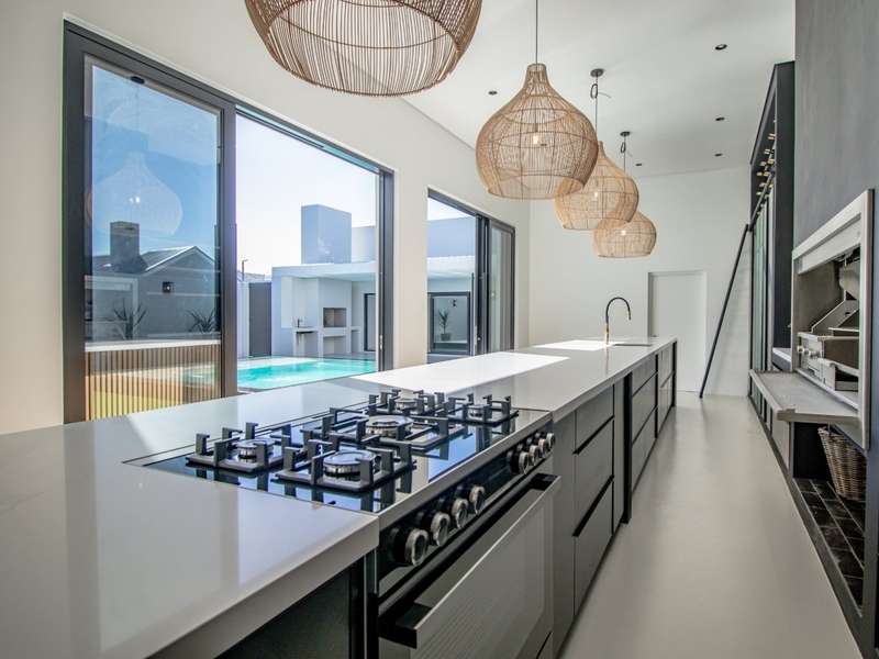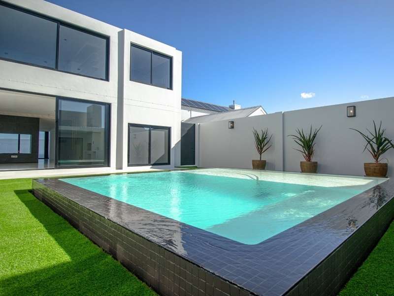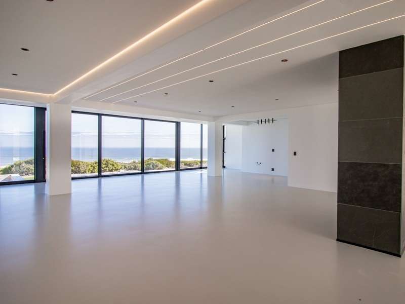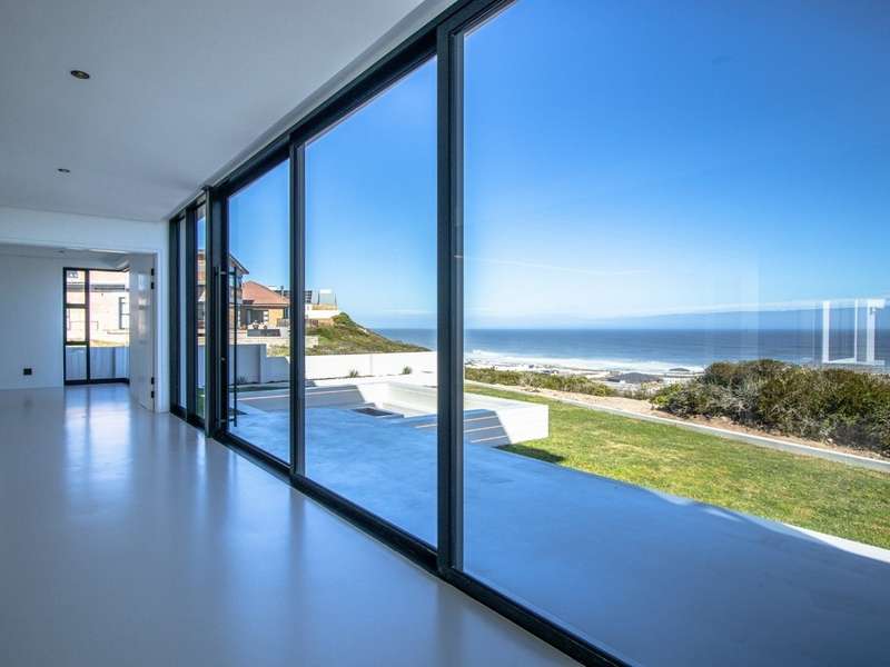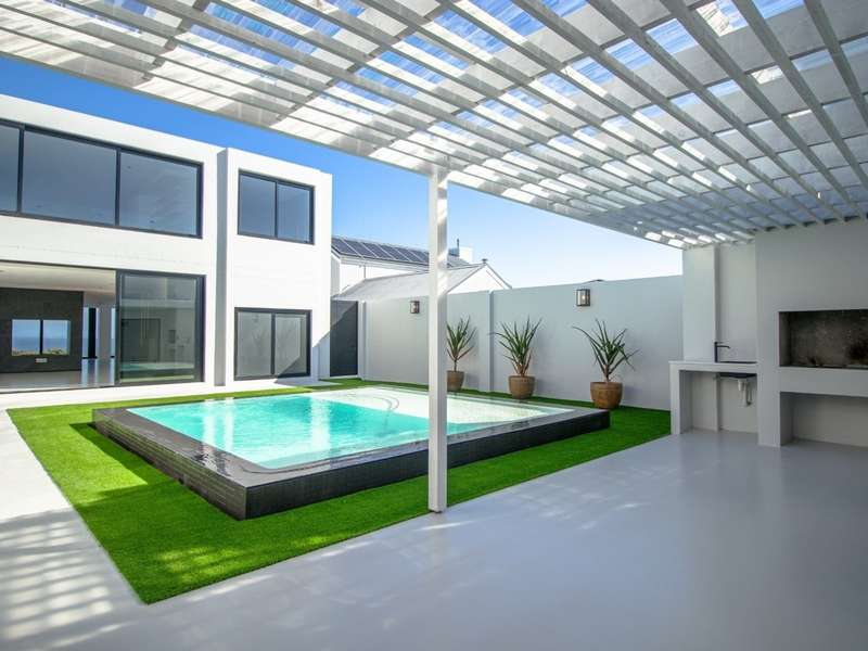 Set along the ever popular Ridge, this extraordinary home boasts views that stretch as far as the eye can see. The sheltered embrace of the U-shaped design and its rim-flow pool reflects the majestic architecture with the captivating ocean views as the backdrop. The kitchen has sliding doors opening onto the pool area. A jaw dropping centre island adorned with beautiful light fittings steal the show. It's both a functional workspace and a striking focal point. Floor-to-ceiling cupboards show casing a wine display and an integrated rotisserie/braai including a large scullery makes this, the perfect kitchen. Beyond the kitchen lies the living space. Glass sliding doors, reaching from floor to ceiling, frame the vistas over the adjacent green belt and provide a constant reminder of the coastal paradise below. On the upper level, views continue to unfold. The family room features a kitchenette and is a perfect vantage point to admire the beauty of Yzerfontein's coastline, from Table Mountain to Dassen Island. The master suite with its walk-in closet is luxuriously finished with glass display units and an illuminated mirror, add a touch of glamour. With a total of six en-suite bedrooms, and a guest bathroom, space and privacy is never an issue in this lavish abode. Elegance abounds at every turn, from the use of timber, glass, the finest finishes and other beautiful touches, this home leaves nothing to be desired. It's the ultimate modern entertainer's villa!