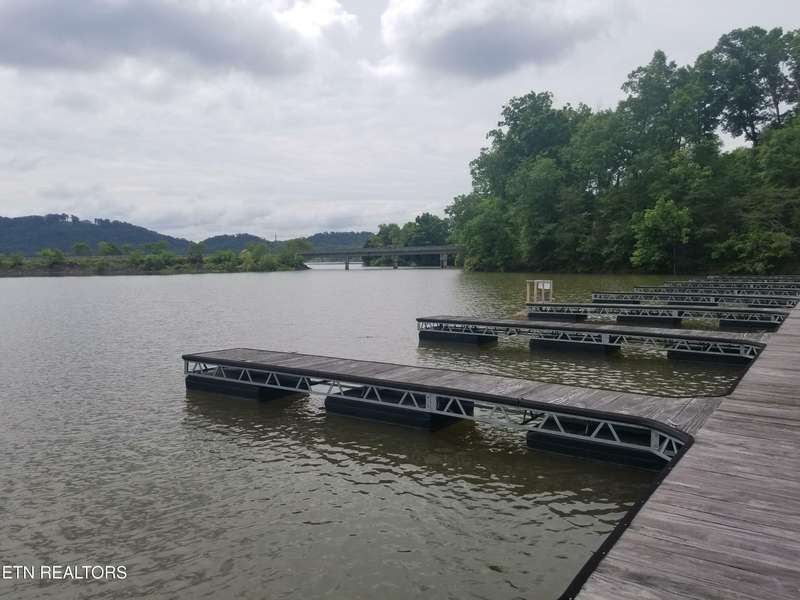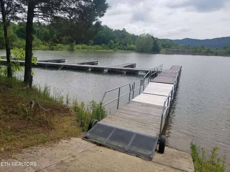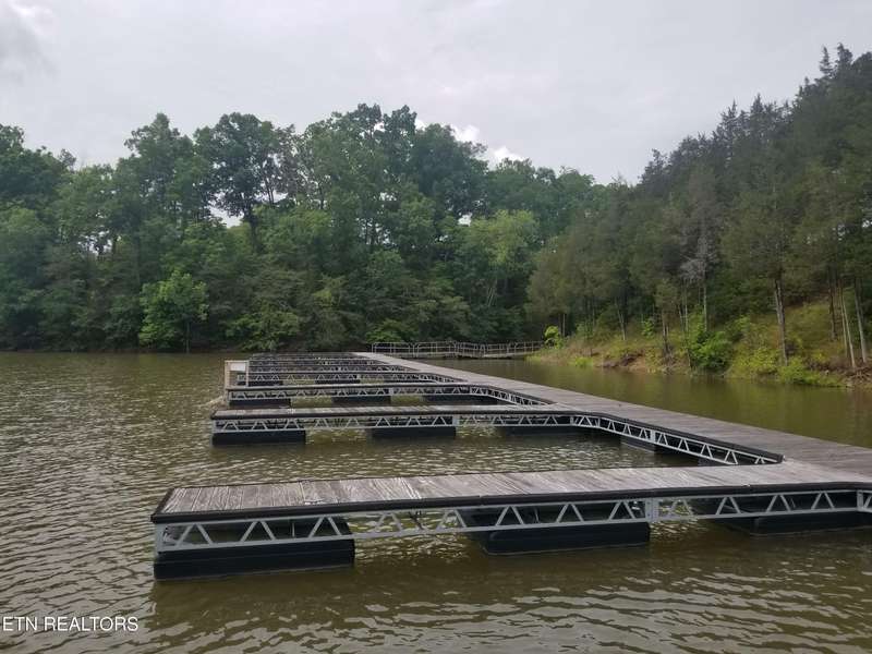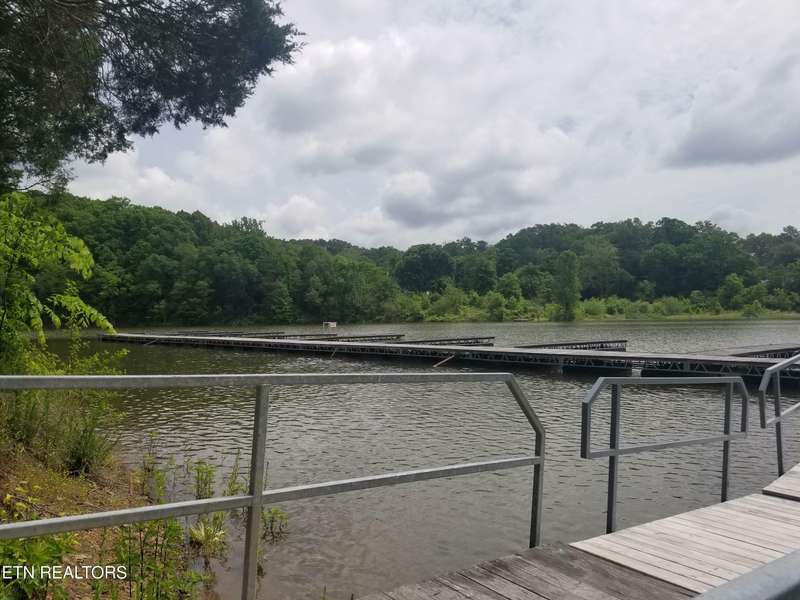 Build your dream home or your vacation get away. Nice .59 acre wooded lakefront lot located in gated community. Community dock and mountain views. Site built homes only with a minimum requirement of 1400 sq ft finished. HOA fees are $500 annually, covering maintenance of the gated entrance and community dock.