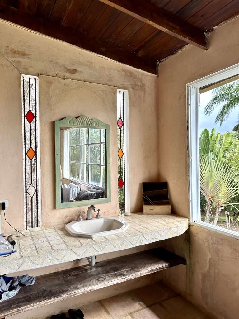 Virgin land surrounds this unique home: Mangos, Avocados, Banana, Oregano, Lemons, Lemongrass, Canas, Windmill, Midget, Royal and Coconut Palms, Caimito (Plum) trees and the list goes on.