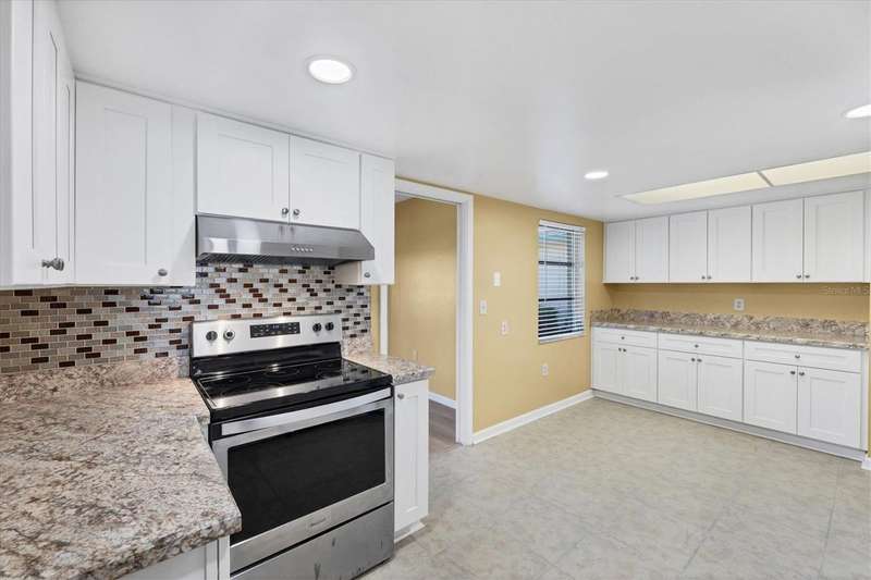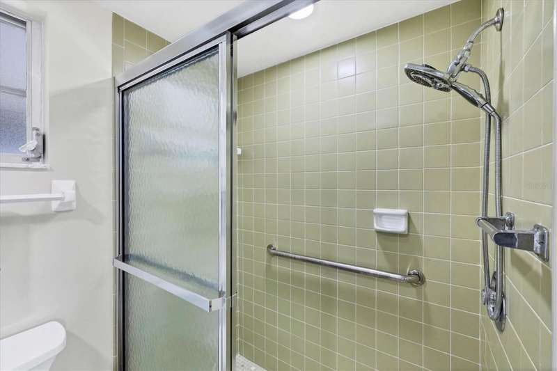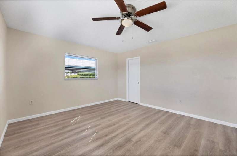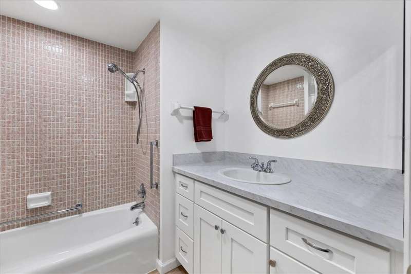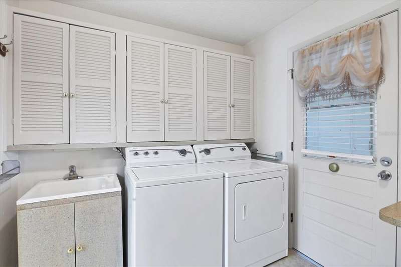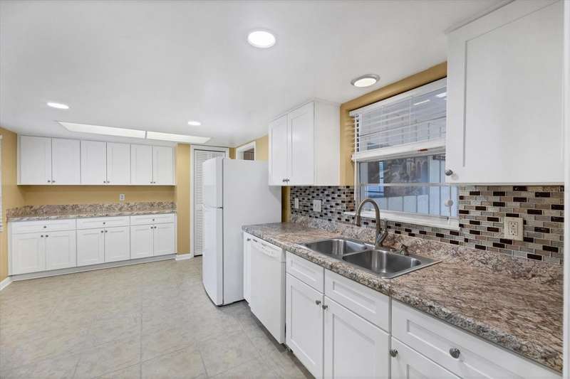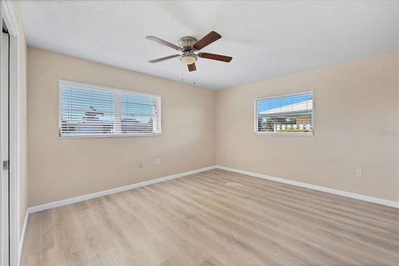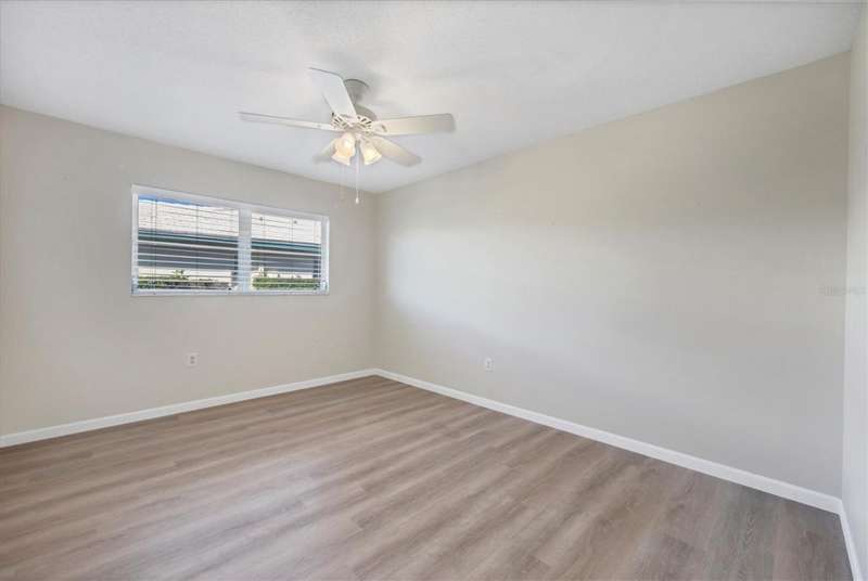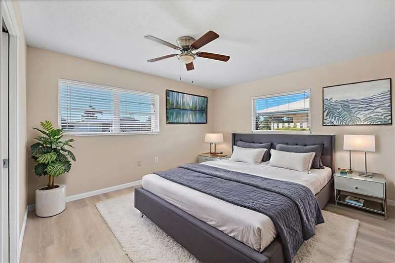 One or more photo(s) has been virtually staged. Located in a prime west Bradenton area, this two-bedroom, two-bath paired villa condominium with a one-car garage is situated within the 55+ Village Green community on a peaceful cul-de-sac, just 5.7 miles from Holmes Beach on Anna Maria Island. This well-priced property offers an excellent opportunity for use as either a permanent residence or a seasonal retreat. The unit is located outside designated high-risk flood zones, thereby minimizing insurance liabilities and improving overall security. The unit has a glassed in Florida room with pleasant greenbelt view. The kitchen now features shaker wood cabinets, dovetail soft-close drawers, a recently purchased refrigerator and garbage disposal. The installation of shaker wood vanities and modern fixtures in both spotless bathrooms has been completed. Other recent updates include laminate flooring, electric garage door opener, hot water heater in 2022, the A/C duct work was replaced in 2014, the air handler and compressor in 2015. Residents may keep one pet weighing up to 15 pounds, pending approval from the board. The condo fee is $433 monthly, but is paid quarterly at a rate of $1,300. This fee covers basic cable, internet, access to the heated community pool, escrow reserves, lawn care, irrigation, pest control, pool maintenance, roof cleaning, and exterior painting. Your insurance policy will be an HO6 policy. Village Green is a wonderful community, offering convenient access to GT Bray Park, Robinson Preserve, Downtown Riverwalk, and SRQ Airport-so don't miss this opportunity. Contact the listing agent to schedule your private showing and enjoy Florida living.