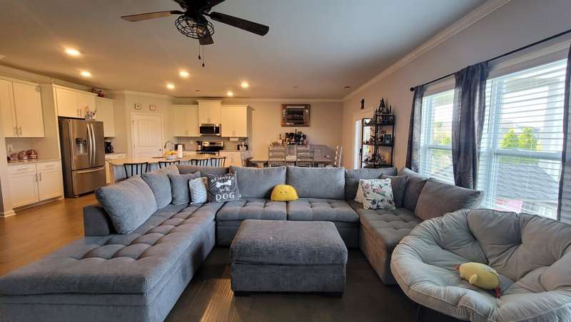 Step inside this welcoming 4-bedroom, 2-bath home and you'll instantly feel the comfort of all one-level living. With 2,431 sq. ft. of thoughtfully designed space, this home offers room to spread out while still feeling warm and inviting.The heart of the home is its open floor plan, where natural light flows easily from room to room. Cozy built-in bookshelves add character, while the freshly repainted interior gives every space a bright, move-in ready feel. A dedicated office area provides a quiet place for work, study, or creativity. The primary suite is a true retreat, featuring a spacious walk-in closet with custom built-ins to keep everything beautifully organized.Outside, the fenced backyard is ready for family fun, pets, or weekend barbecues, all kept lush with in-ground irrigation. With a quarter-acre lot, there's space to enjoy without feeling overwhelming.From morning coffee to evenings spent with friends and family, this home was designed for everyday living and special moments alike.
