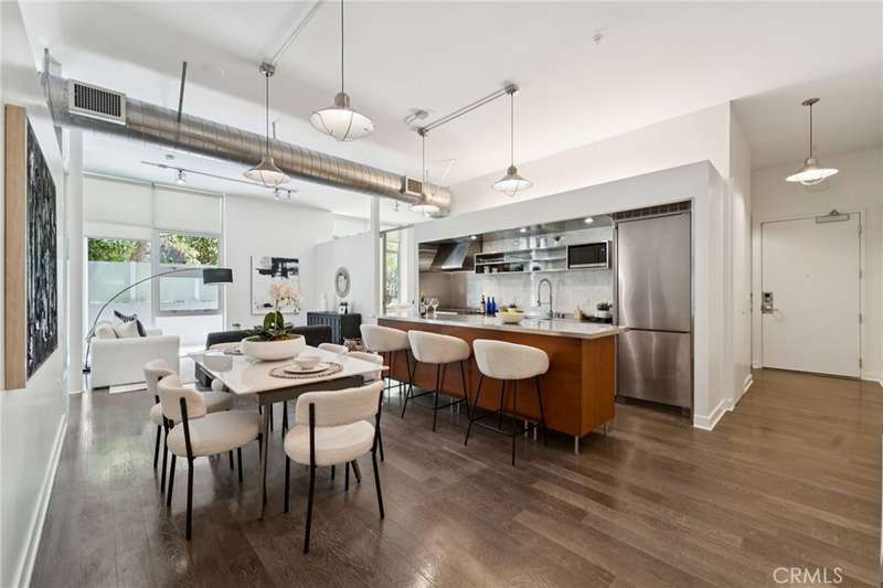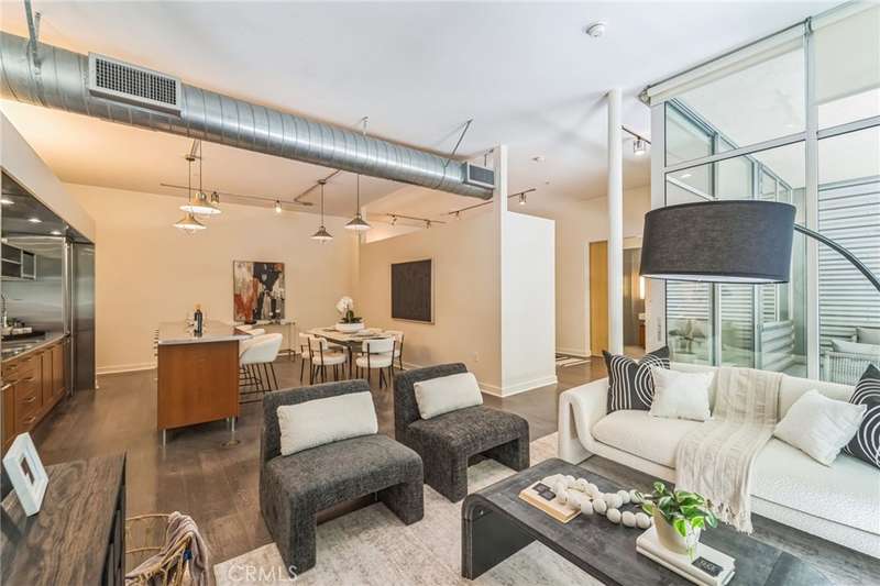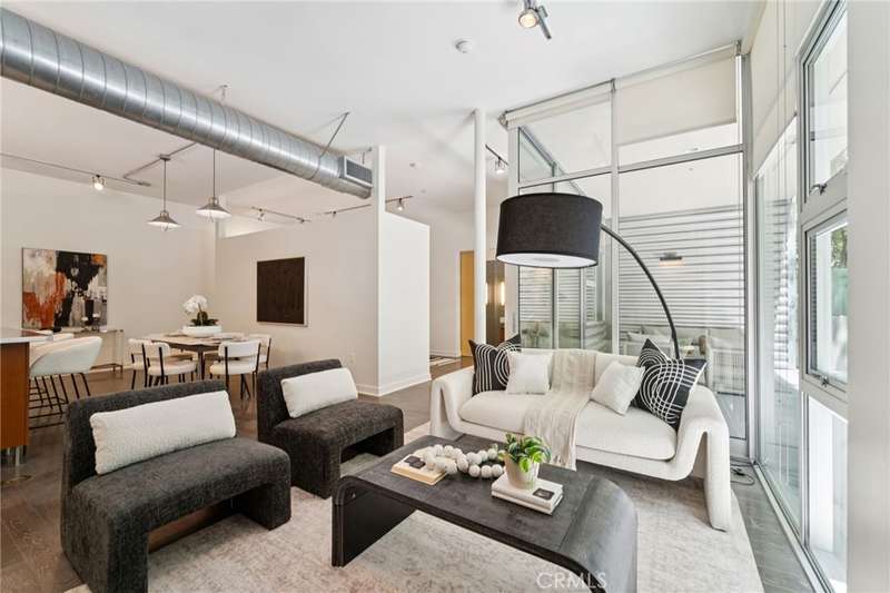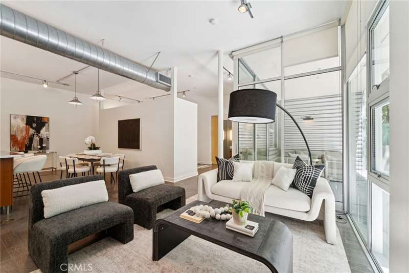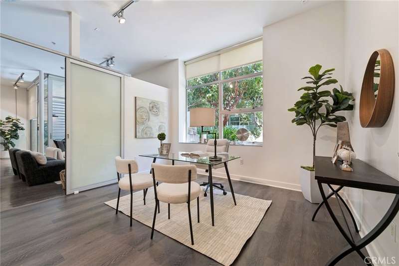 Rarely available GROUND FLOOR 2 plus 2 unit in the vibrant Gallery Arts Community located in the heart of the Marina Del Rey Arts District. No need for elevators to enter this modern industrial style loft offering an open floorplan. Full volume 11ft. ceilings, floor to ceiling picture windows and providing plenty of natural light with a view toward the Courtyard trees and greenery views. The open concept kitchen is fully equipped with European Stainless Steel appliances and a huge SS Island with all modern finishes. The open floor plan flows seamlessly between living and dining areas into a large covered patio perfect for al fresco dining in a private setting. The primary suite offers a huge walk in closet with cedar lined drawers, a luxurious end suite bath with soaking tub and separate glass enclosed shower. Controlled access security building, subterranean garage with 2 car tandem parking and ample guest parking, EV charging stations. HOA amenities include a lovely open Courtyard with outdoor BBQ and Fire pit seating area. The location is just steps away from the Marina Marketplace, with a vibrant mix of restaurants, Cafes and Boutique shopping and every amenity imaginable. I mile to the beach and 12 minutes to LAX. Enjoy the lifestyle!