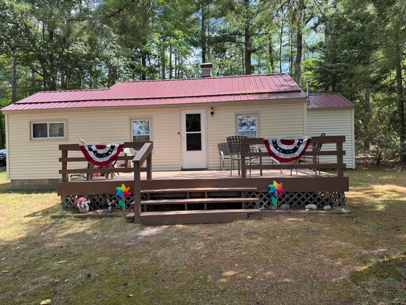 Amazing lake views and just steps to the lake. The sandy bottom is great to walk right into the lake. There are 2 bedrooms with 1 bathroom. Most furnishings will stay and dock. Newer metal roof and siding with a large12x18 foot deck on the lakeside to enjoy the view. Nice size garage and shed for all the toys. Close to Garland Golf Resort.