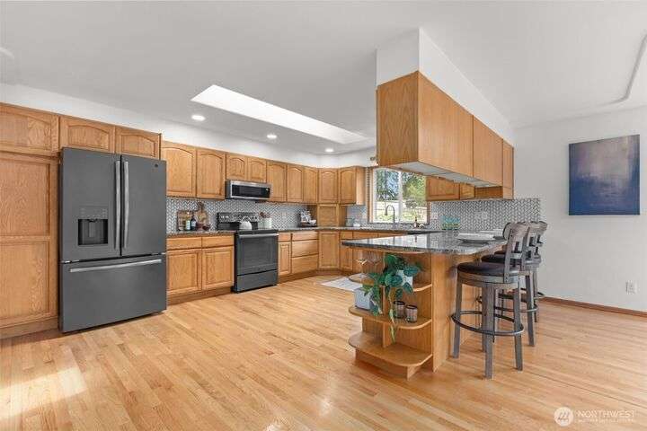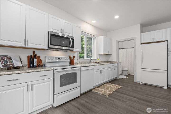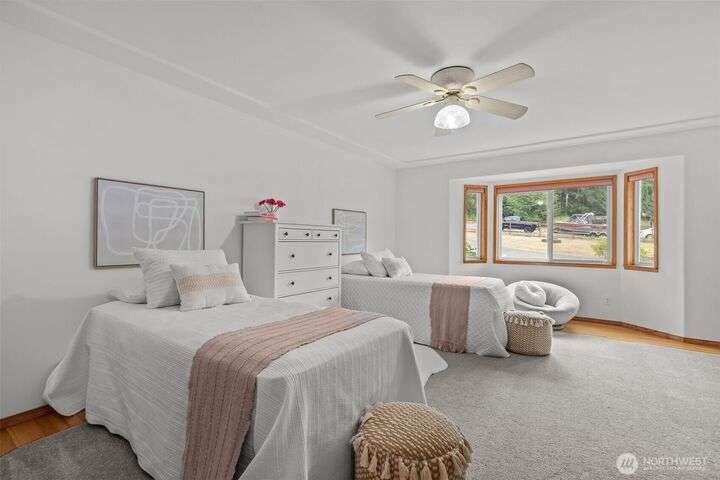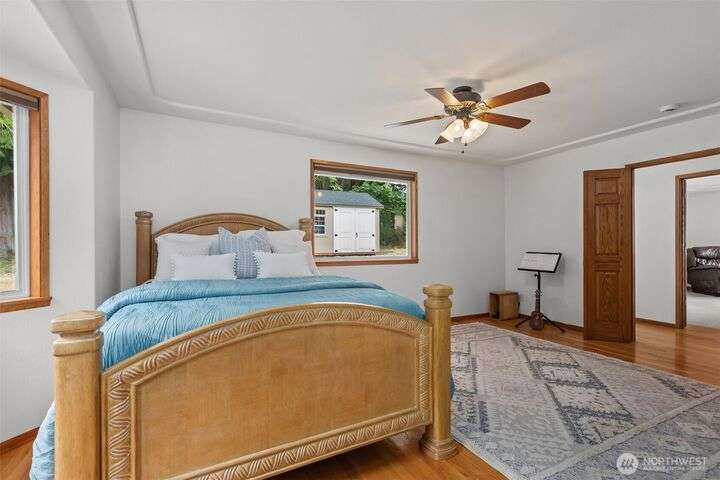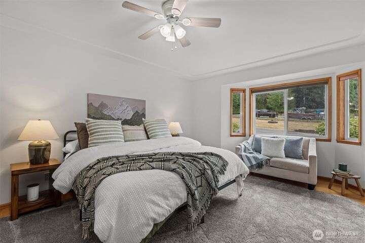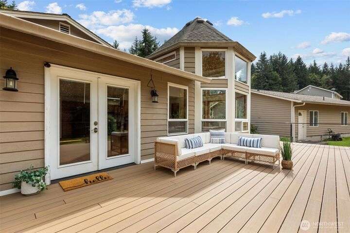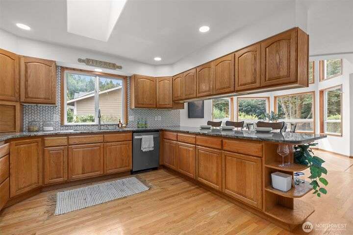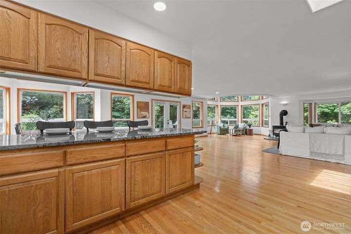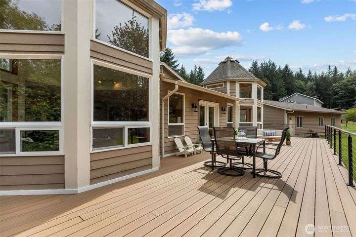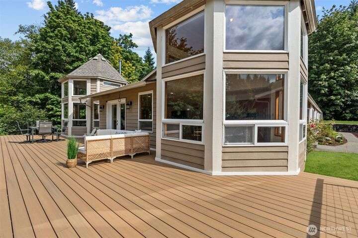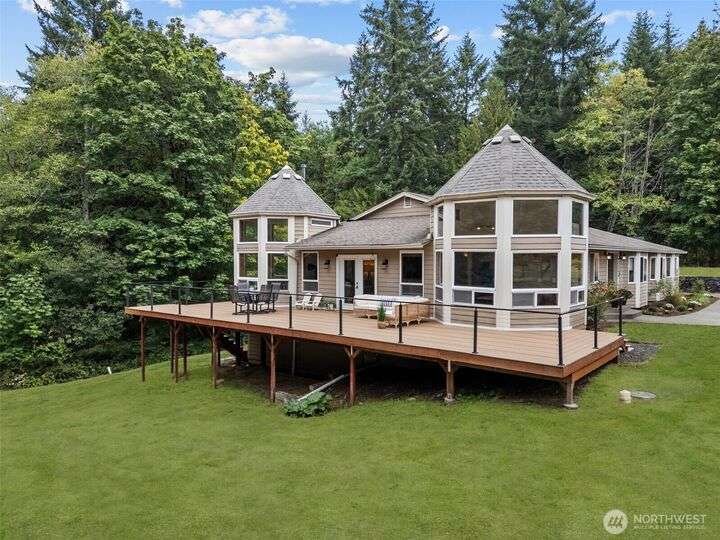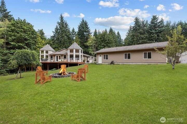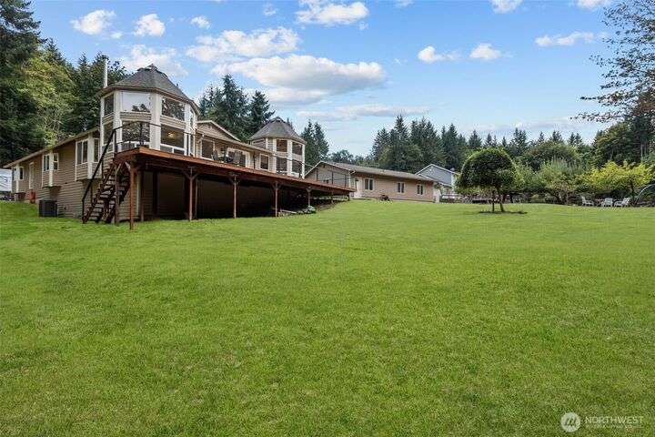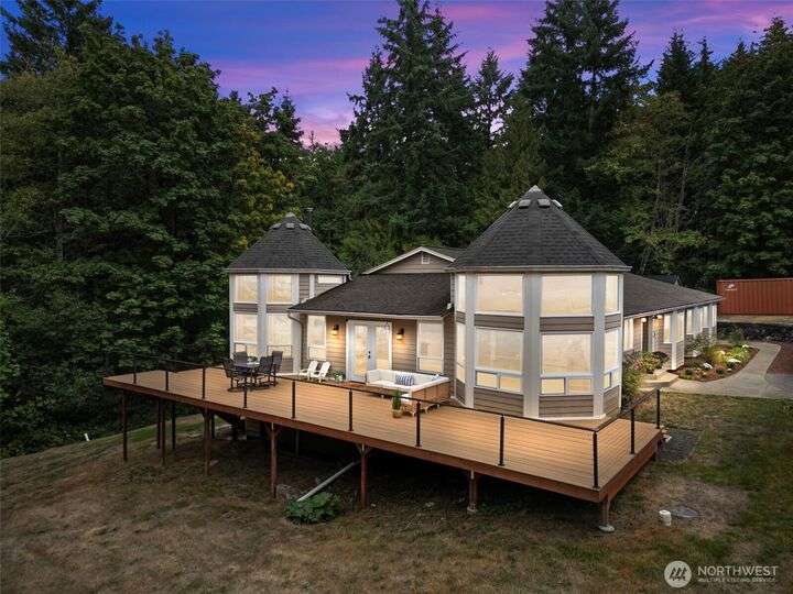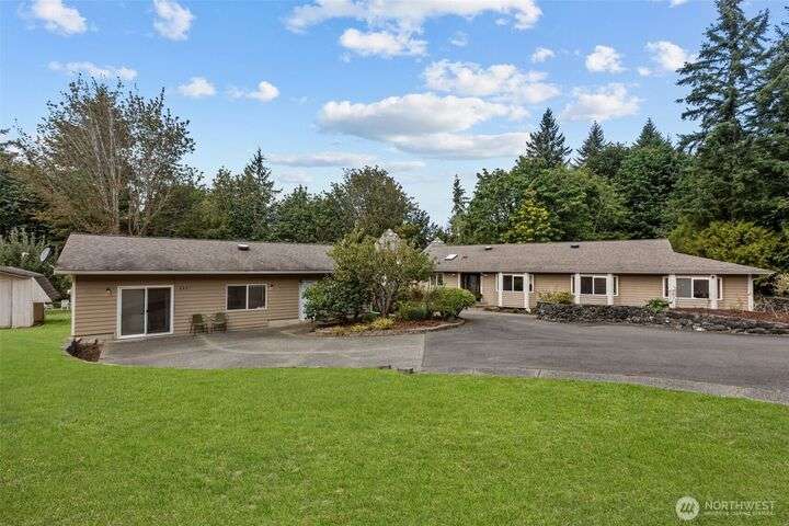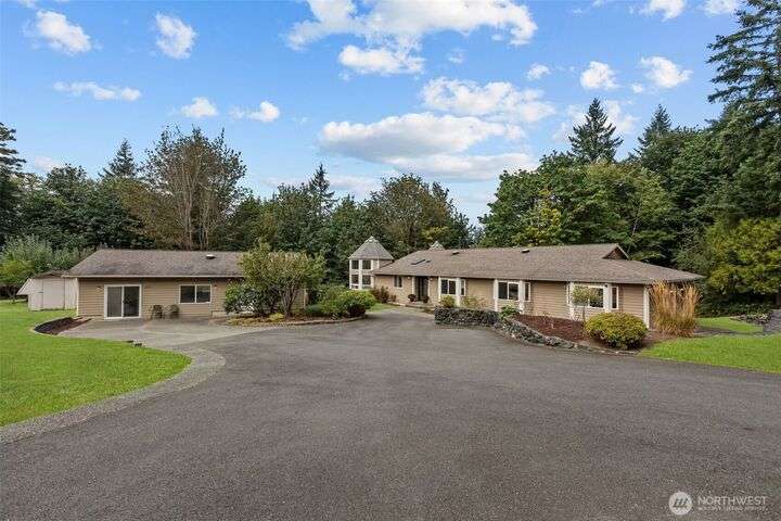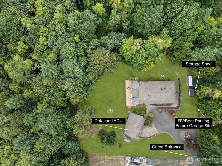 An exceptional property situated on 2.5+ acres this estate features a spacious custom-built rambler paired with a beautifully remodeled 1,200sqft detached ADU w/ 2bed, 1bath perfect for multi-gen or rental income. Primary residence offers a luxe primary suite & 3 additional beds + bonus room! A grand open-concept living & dining area w/ solid oak & carpet inlay floors, custom detailing & a wood-burning stove. Kitchen boasts a generous layout with newer appliances, granite counters & ample storage. Large windows frame tranquil forest views filling the home with natural light. Step outside onto the new expansive TimberTech deck, enjoy fruit trees & the private bar! RV/Boat parking & space for future garage/shop! 5mins to Southworth ferry!