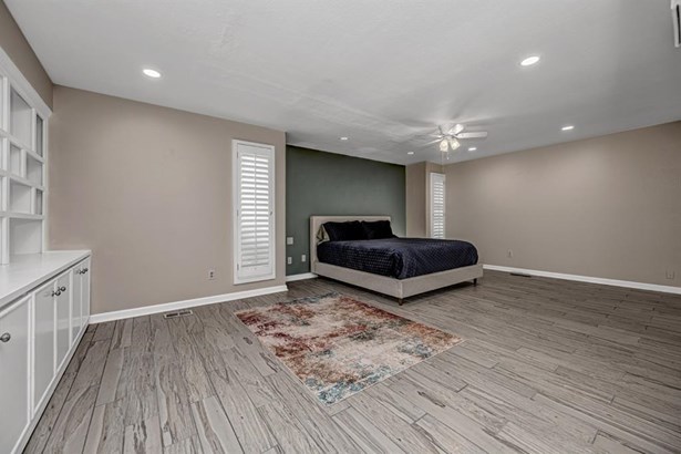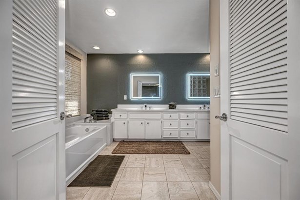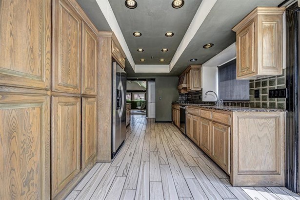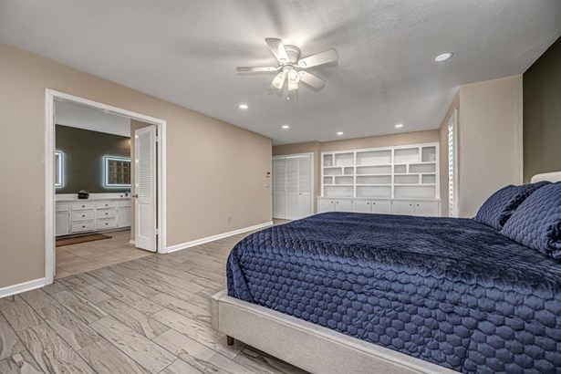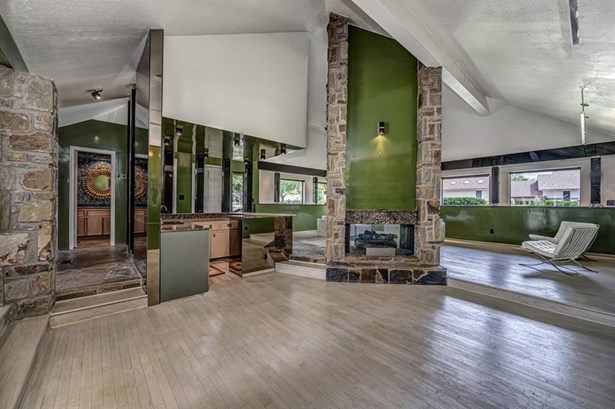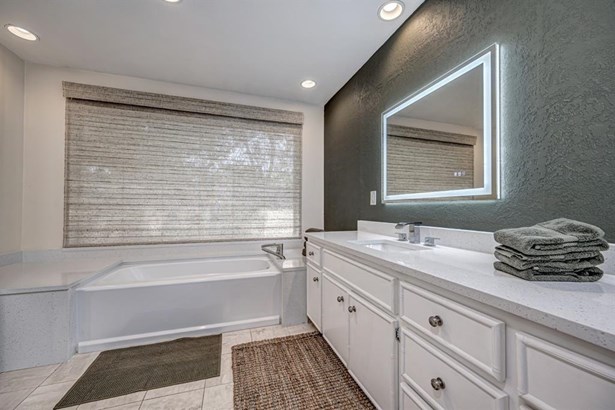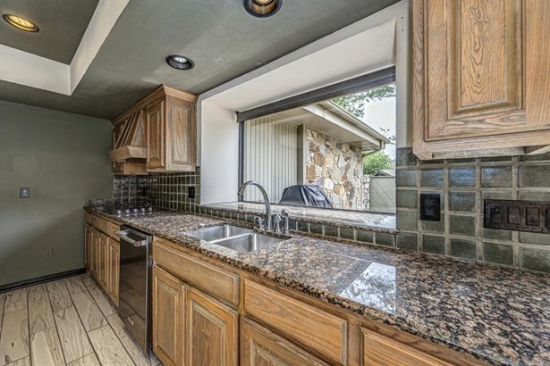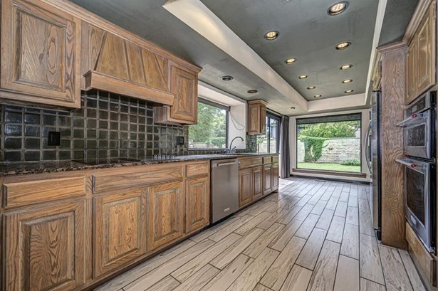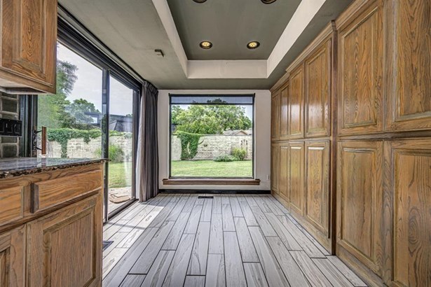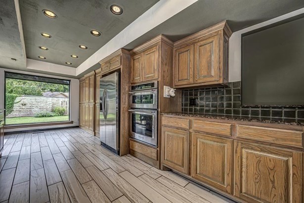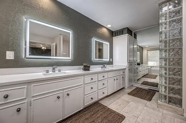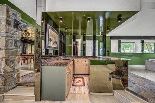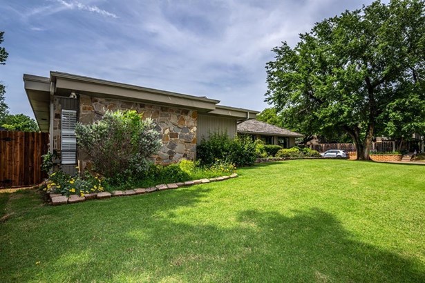 Very open and entertaining contemporary home in north Quail Creek This late mid century modern home has a flag stone entry entering into a dramatic living space with a double sided fireplace open to two living areas and the wet bar The bar has granite counter tops and an icemaker The living areas and formal dining room have hardwood floors The kitchen and breakfast room are open and light with access to the backyard Plenty of storage with granite counter tops and Kitchenaid appliances There are three spacious bedrooms The primary bedroom has a seating area and built-in bookshelves with a generously sized bathroom The bath has a separate tub and shower and double vanities The house is complete with zoned heat and air with one system brand new This delightful home is waiting on the perfect buyers