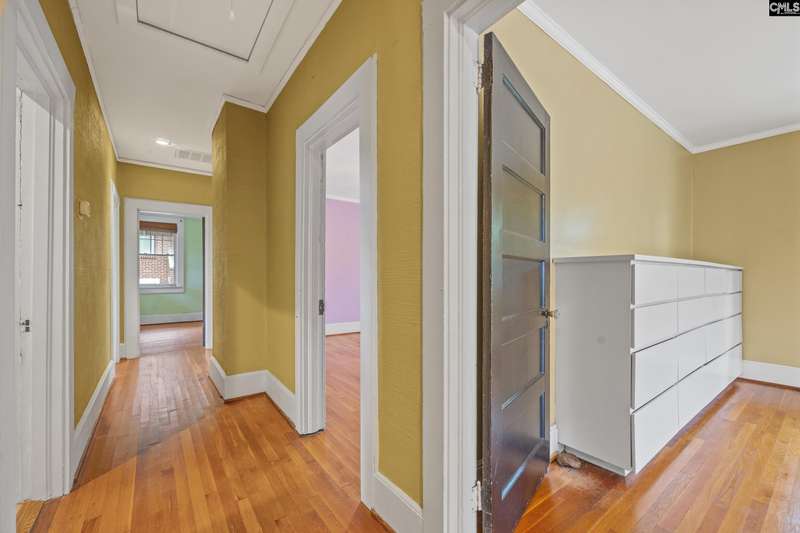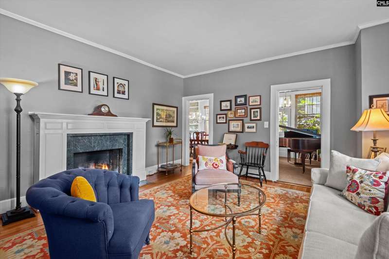 Love Where You Live - in the heart of one of Columbia's well established downtown neighborhoods, Hollywood-Rosehill......welcome to 107 Southwood! This home has inviting curb appeal, hardwood floors throughout, 9ft ceilings and an abundance of natural light. The various rooms on the 1st floor provide many gathering options with family and friends. The living room, with a cozy fireplace, opens into the dining room and the music room/office/study. A den, tucked off on the "other side" of the home, is a comfortable room for reading, games, and tv. Bedroom on 1st floor connects with the 1/2 bath. The beautiful kitchen has gas range and double ovens, a pantry and plenty of under counter storage - there is even a good reading nook directly in front of the window! Outdoor grilling area, directly outside the kitchen, overlooks the fenced in backyard. Upstairs, the spacious primary bedroom has an en suite bathroom with double vanity, shower, walk in closet. Each of the other 2 bedrooms have bathrooms in the hall, one with a shower while the other bathroom has a tub. The floor plans that are provided in documents include the unfinished basement; this is great storage space. This home is in walk/bike zone to the neighborhood schools, grocery stores, cafes, and restaurants. Disclaimer: CMLS has not reviewed and, therefore, does not endorse vendors who may appear in listings.