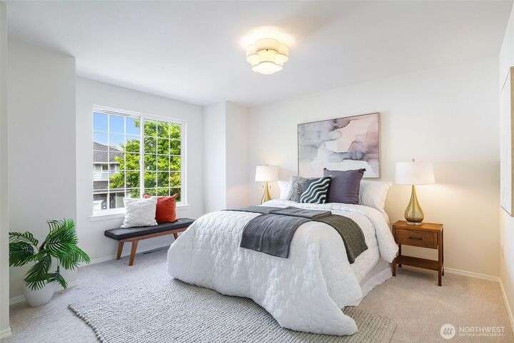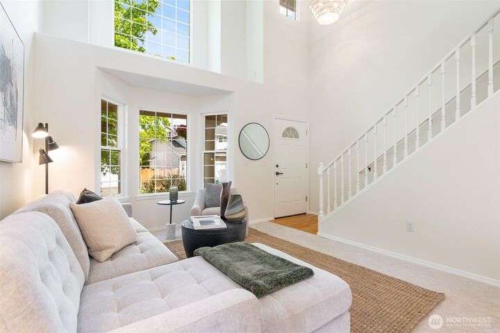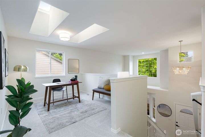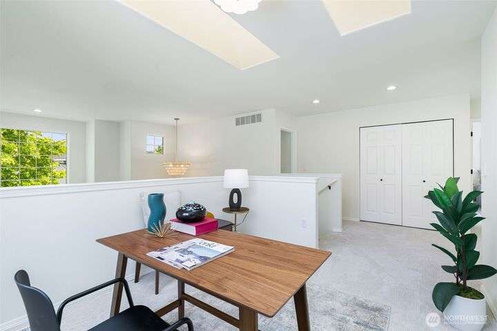 Tucked on a quiet side street in Waterbury Meadows, this sun-drenched beauty dazzles with amazing updates throughout—soaring ceilings, skylights, gleaming hardwoods, fresh paint, chic lighting, new tile & plush carpet. The remodeled kitchen with all-new stainless appliances flows into an open living area anchored by a cozy gas fireplace, perfect for gatherings. Step outside to a fully fenced backyard with new privacy trees, ideal for entertaining or relaxing. Upstairs, a spacious primary suite with walk-in & ensuite, 2 bedrooms, full bath & versatile loft perfect for office, playroom, or potential 4th bedroom. Laundry room, 2-car garage, new roof, new fence, community play area, and top-rated Northshore Schools complete this must-see home!