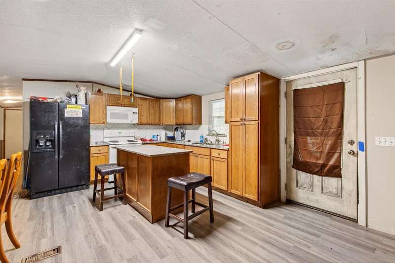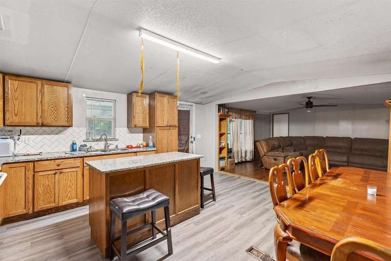 Welcome to your country retreat just minutes from town! This spacious home sits on a full 1-acre lot, offering the perfect blend of comfort, functionality, and rural charm. With 6 generously sized bedrooms and 4 bathrooms (one of which is ready for your finishing touches), this home is ideal multi-generational living. The open-concept layout seamlessly connects the living room, dining area, and kitchen with an island, creating an inviting space to relax or entertain. The living room features wood-style flooring and a spacious sectional area, great for movie nights or cozy evenings in. Step outside to enjoy your covered front porcha great spot for morning coffee or unwinding after a long day. Behind the home, youll find an expansive workshop with a connected barn, perfect for hobbyists, small business needs, or housing your livestock. Whether youre raising chickens or caring for horses, the setup is ready and waiting with functional fencing and shaded areas. The property is fully fenced with a gated entry and plenty of parking space for vehicles, trailers, or farm equipment. Bring your ideas, priced to sell! Bring all offers!